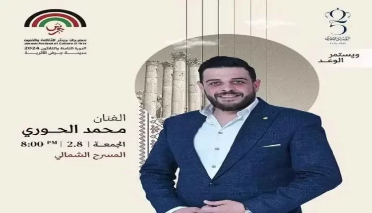 يشارك الفنان الأردني محمد الحوري في مهرجان جرش الثامن والثلاثين للثقافة والفنون، حيث سيؤدي حفلة على المسرح الشمالي للمهرجان يوم الجمعة 2/8/2024.