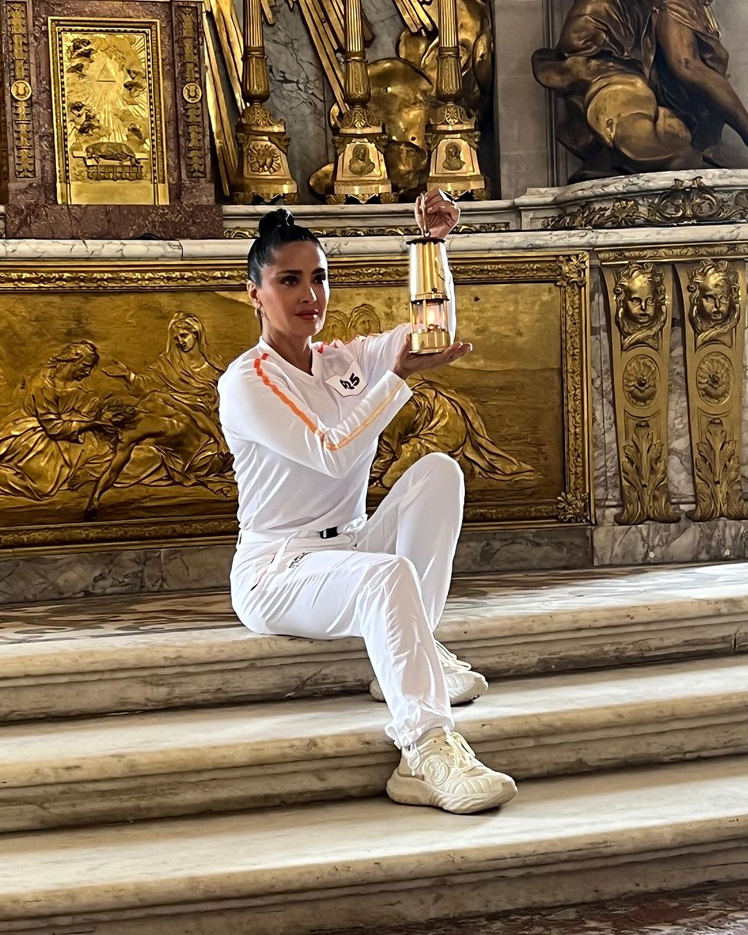 بالملابس الرياضية… سلمى حايك تحمل شعلة أولمبياد باريس 2024