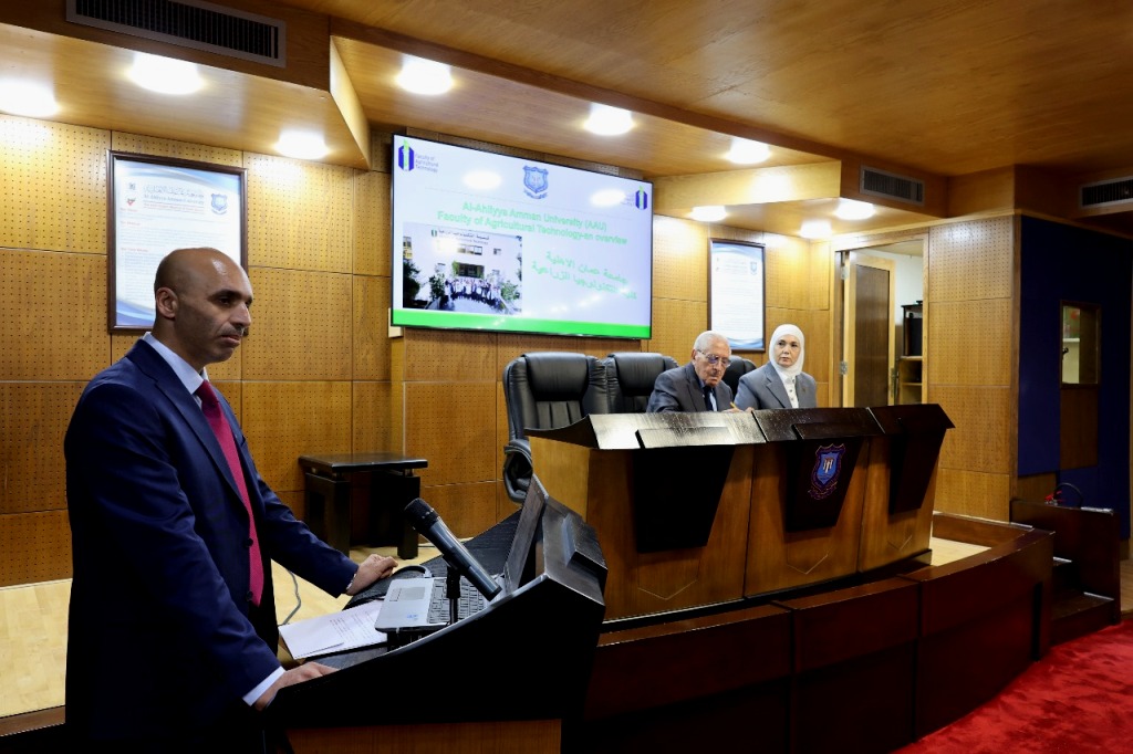 وألقت عميد كلية التكنولوجيا الزراعية كلمة ترحيبية بينت فيها أهمية التكنولوجيا الزراعية في تحقيق أهداف التنمية المستدامة والوصول للأمن الغذائي، حيث أنشئ في الأردن المركز الإقليمي للأمن الغذائي وبينت دور كلية التكنولوجيا الزراعية في رفد القطاع الزراعي بمهندسين يمتلكون المهارة في التكنولوجيا الزراعية الحديثة .