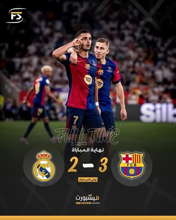 وتقدم برشلونة عن طريق لاعبه الاسباني بيدري غونزاليس في الدقيقة 28، قبل أن يعود ريال مدريد بتسجيل هدفين عن طريق الفرنسي كيليان مبابي في الدقيقة 70 ومواطنه تشواميني في الدقيقة 77، ليعادل الاسباني فيران توريس النتيجة مجدداً لبرشلونة، لتصل المباراة للأشواط الإضافية.
