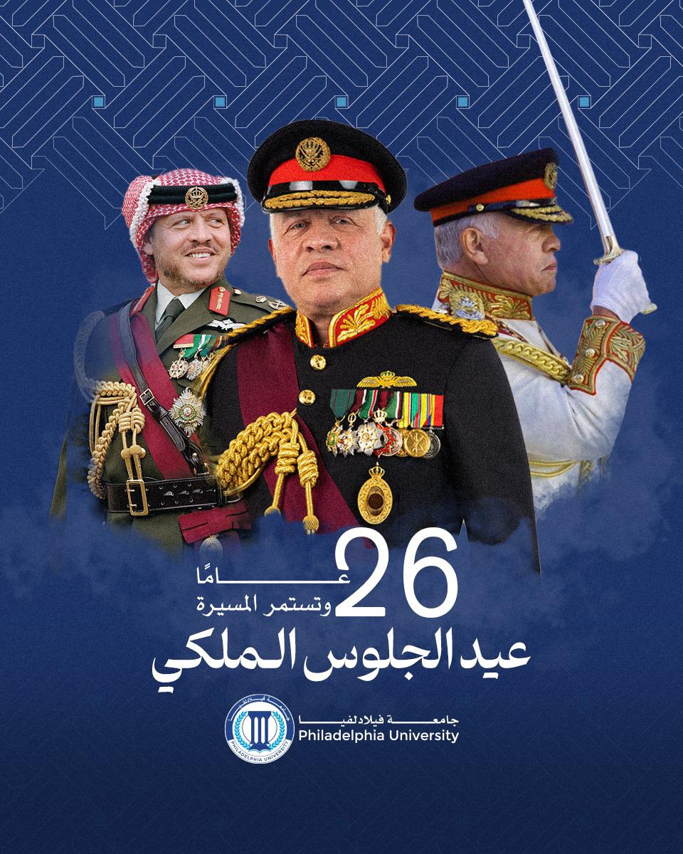 تهنئ أسرة جامعة فيلادلفيا صاحب الجلالة الهاشمية الملك عبدالله الثاني ابن الحسين المعظم بمناسبة عيد الجلوس الملكي السادس والعشرين