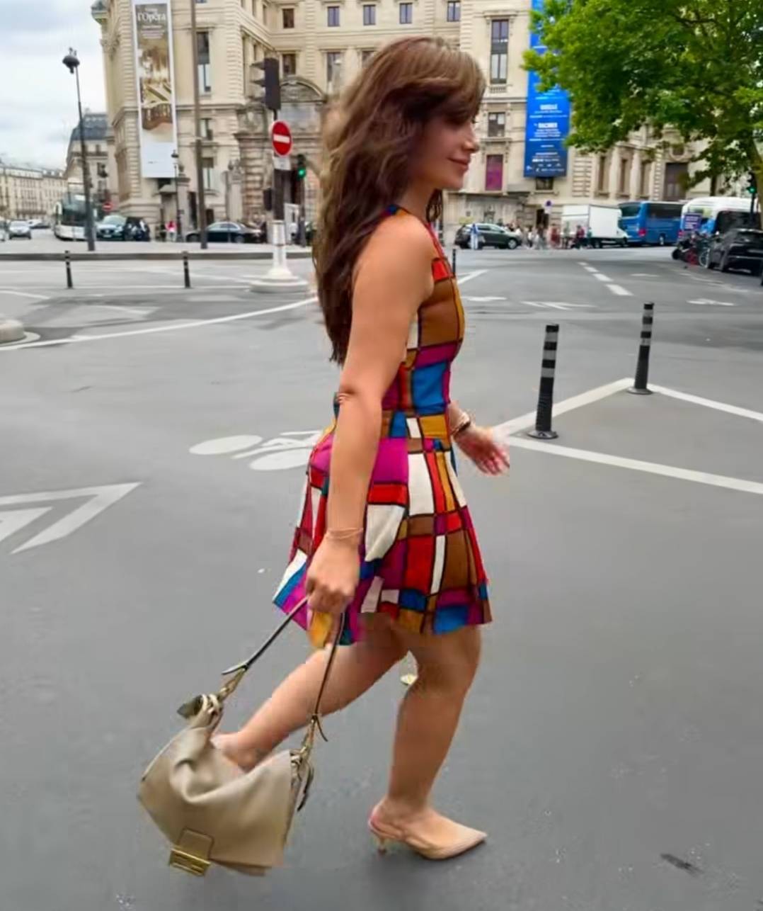 وفي إطلالة أخرى أكثر حيوية، ظهرت صبا بفستان قصير ملوّن بطبعة المربعات، جمع بين ألوان متعددة بروح مرحة وصيفية. التصميم كان نابضاً بالحياة ويناسب أجواء باريس الصيفية بكل تفاصيله. واعتمدت مع الفستان حقيبة وحذاء بألوان محايدة، ما أضفى توازناً على الإطلالة وجعل الفستان نجم اللوك من دون منافس.