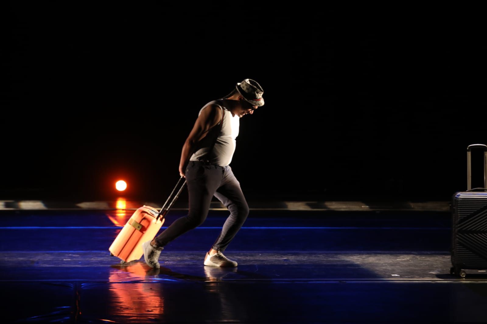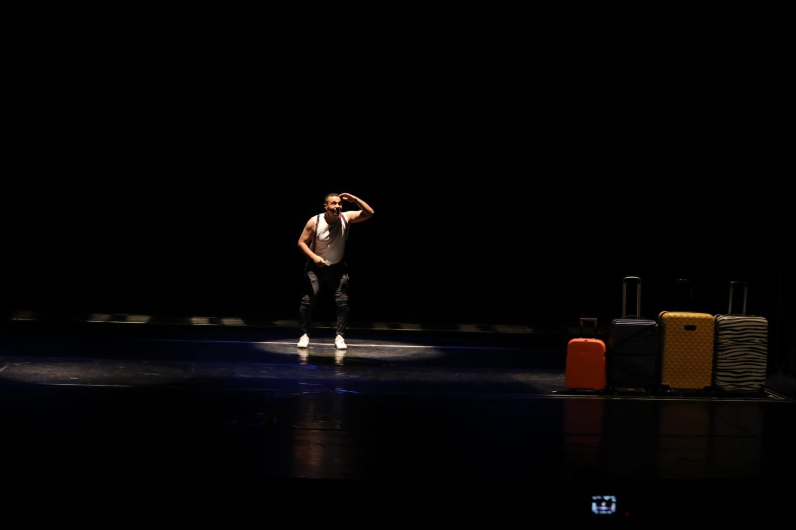 وفي إطار مونودرامي متماسك، يقف “الممثل – المسافر” ليحمل حقائبه المادية والرمزية، باحثًا عن إجابة لسؤال وجودي يتردد طيلة العرض: “إلى أين؟”. فالمسرحية لا تكتفي بعرض مشهد فردي عن الرحيل، بل تحوّله إلى سؤال جماعي يمسّ كل من اضطر أن يغادر، أن يهاجر، أن يُهجّر، أو أن يرحل مجبرًا من وطن بات غير قابل للسكن، بفعل الحروب والدمار والنكبات المتتالية، وحتى الإحتلال في العالم العربي.