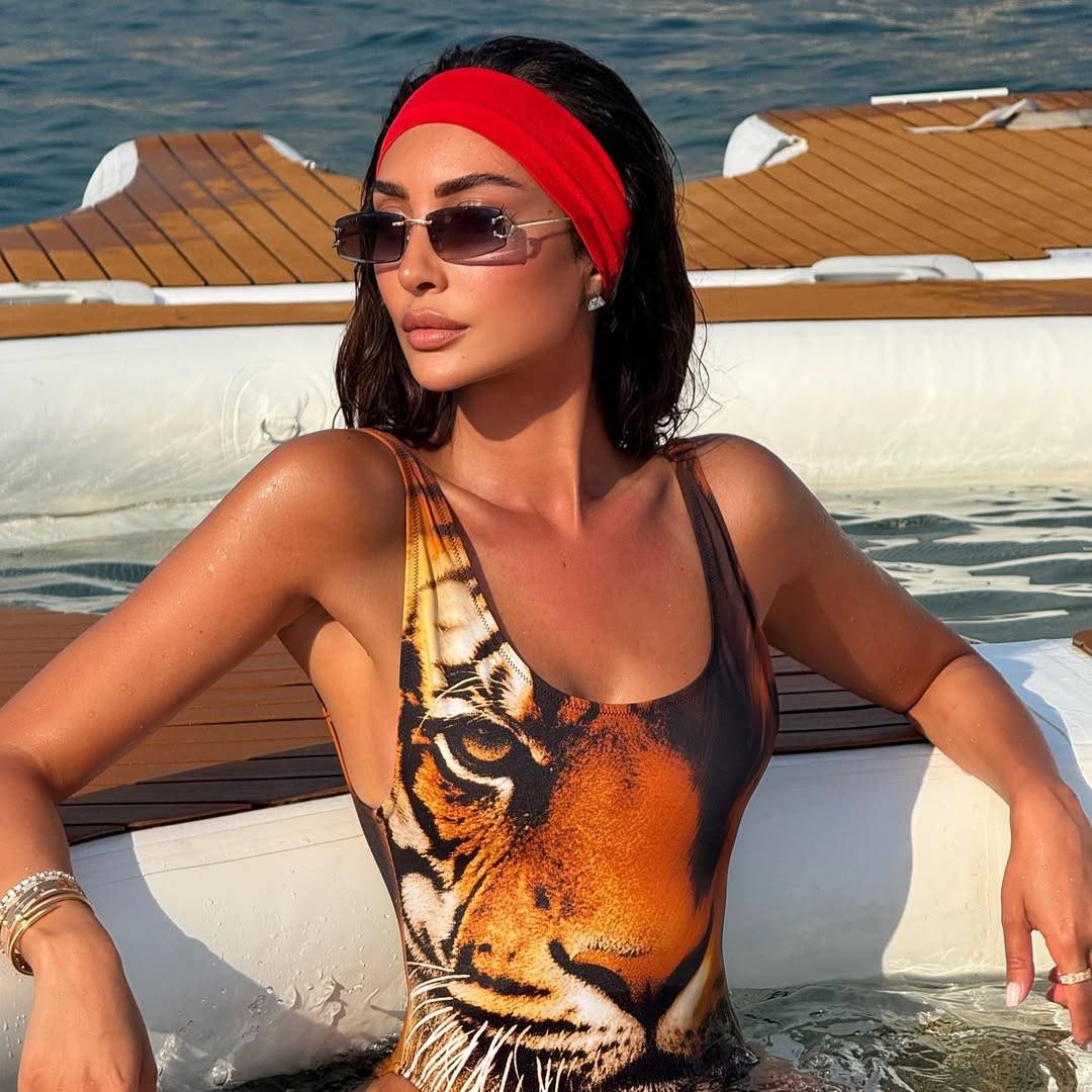 وأطلّت الممثلة المصرية المقيمة في الكويت، عبر حسابها الرسمي في تطبيق “إنستغرام”، بمايوه من قطعة واحدة، بنقشة النمر، وبمزيج من الألوان النارية بين الأصفر والبرتقالي… وعلّقت نور على صور الإطلالة بوصف نفسها بـ”فتاة البحر”.
