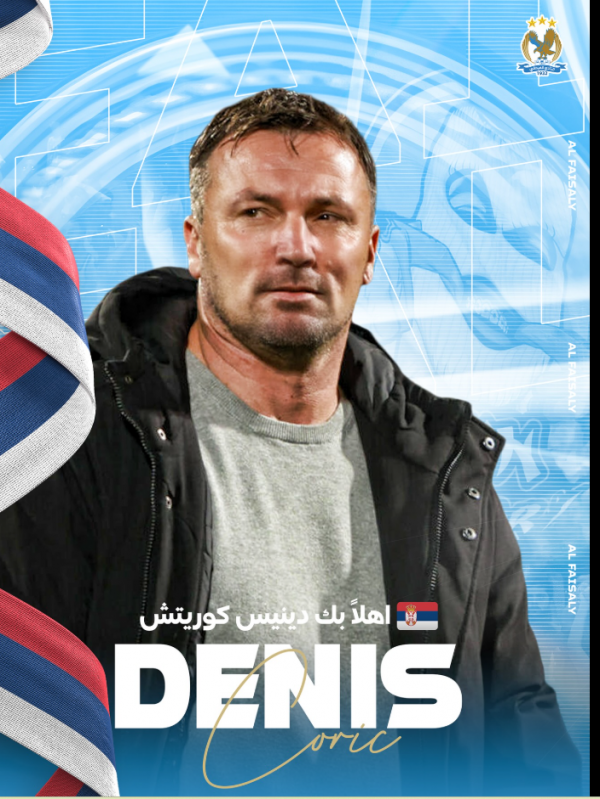 أعلنت اللجنة المؤقتة للنادي الفيصلي، تعاقدها، مع المدرب الصربي دينيس كوريتش ليشغل منصب المدير الفني للفريق الأول، خلفًا لجمال أبو عابد.