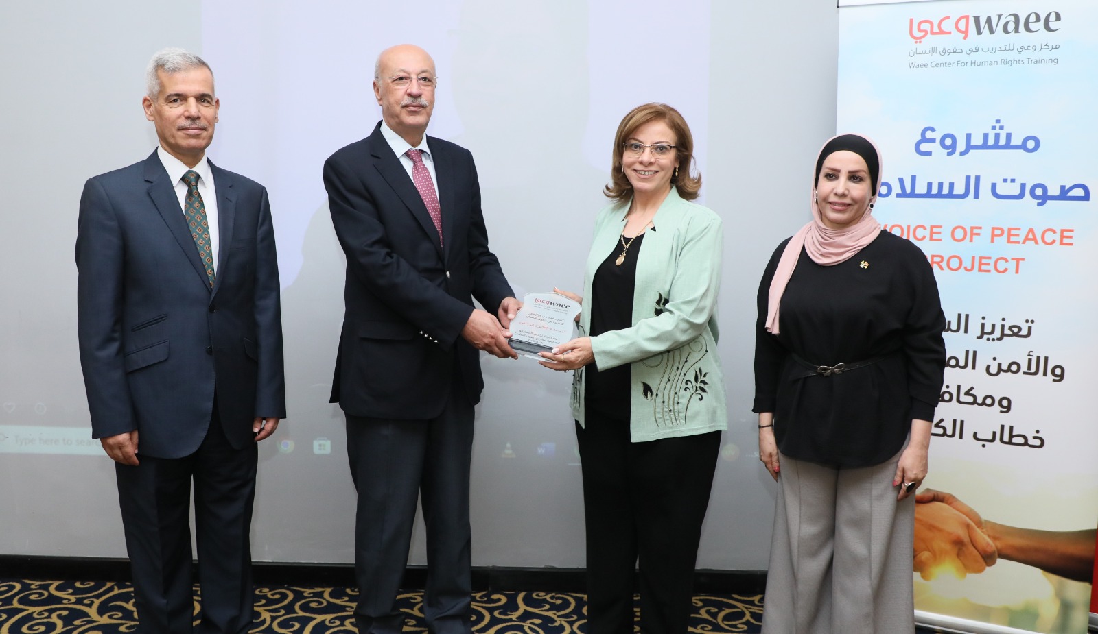 عمّان – تحت رعاية الامين العام لوزارة الاتصال الحكومي مندوباً عنه الاستاذ طه الخصاونه مدير الإعلام الرقمي وإنتاج المحتوى، عقد مركز وعي للتدريب في حقوق الانسان الحفل الختامي لمشروع ” صوت السلام” بدعم من مركز الملك عبد الله بن عبد العزيز العالمي للحوار بين أتباع الأديان والثقافات (كايسيد)،