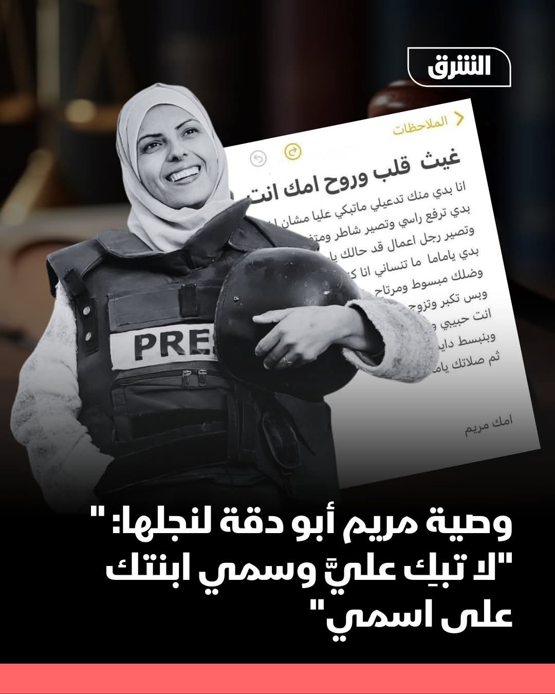 وتقدمت الصحيفة بخالص العزاء إلى أسرة الشهيدة وأحبتها، مؤكدة التزامها بمواصلة رسالتها التي “دفعت حياتها ثمنًا لها، وهي إعلاء الحقيقة ونشر المعرفة”.