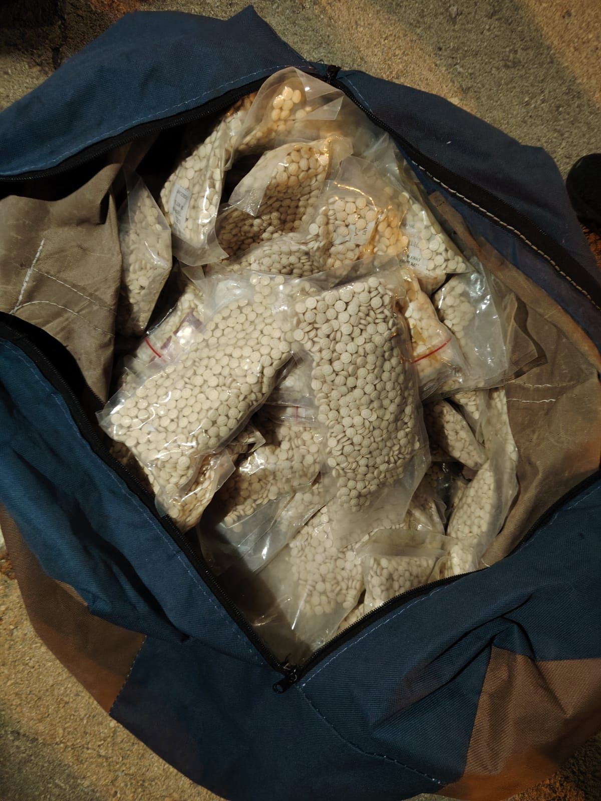 وفي المعبر ذاته وفي القضية الثانية اشتبه بأحد الأشخاص أثناء تجوّله داخل مرافق المعبر الحدودي وأُلقي القبض عليه وبالتحقيق معه اعترف بقيامه بإحضار حقيبتين بداخلهما 150 ألف حبّة مخدرة وأنه قام بإخفائها في إحدى السّاحات الخارجية فور وصوله وقبل نقاط التفتيش، حيث جرى بالتنسيق مع الجمارك الاردنية والاجهزة الامنية ضبط الحقيبتين وما بداخلهما من مواد مخدرة .