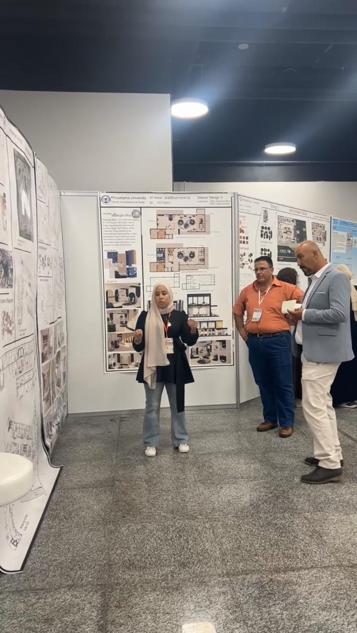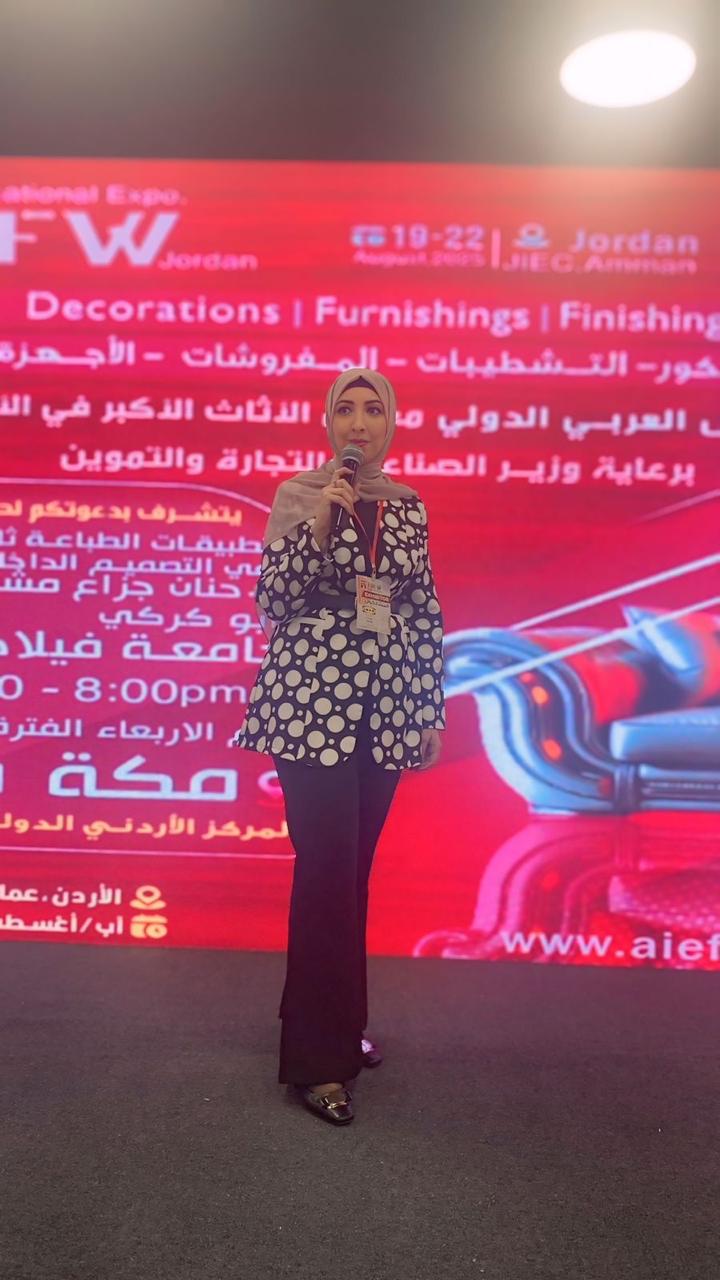 وبرزت مشاركة قسم التصميم الداخلي في جامعة فيلادلفيا من خلال ثلاث محاضرات متخصصة، حيث قدّم الأستاذ محمد عبابنة في اليوم الأول محاضرة بعنوان “الخامات الذكية – ثورة في تصميم المساحات الداخلية وصناعة الأثاث”، فيما تناولت الدكتورة حنان أبو كركي في اليوم الثاني موضوع “تطبيقات الطباعة ثلاثية الأبعاد في التصميم الداخلي والأثاث”. أما اليوم الثالث، قدّم فيه الأستاذ صلاح الدين الرويعي محاضرة حول “تطبيقات الذكاء الاصطناعي في التصميم الداخلي وتصميم الأثاث”.