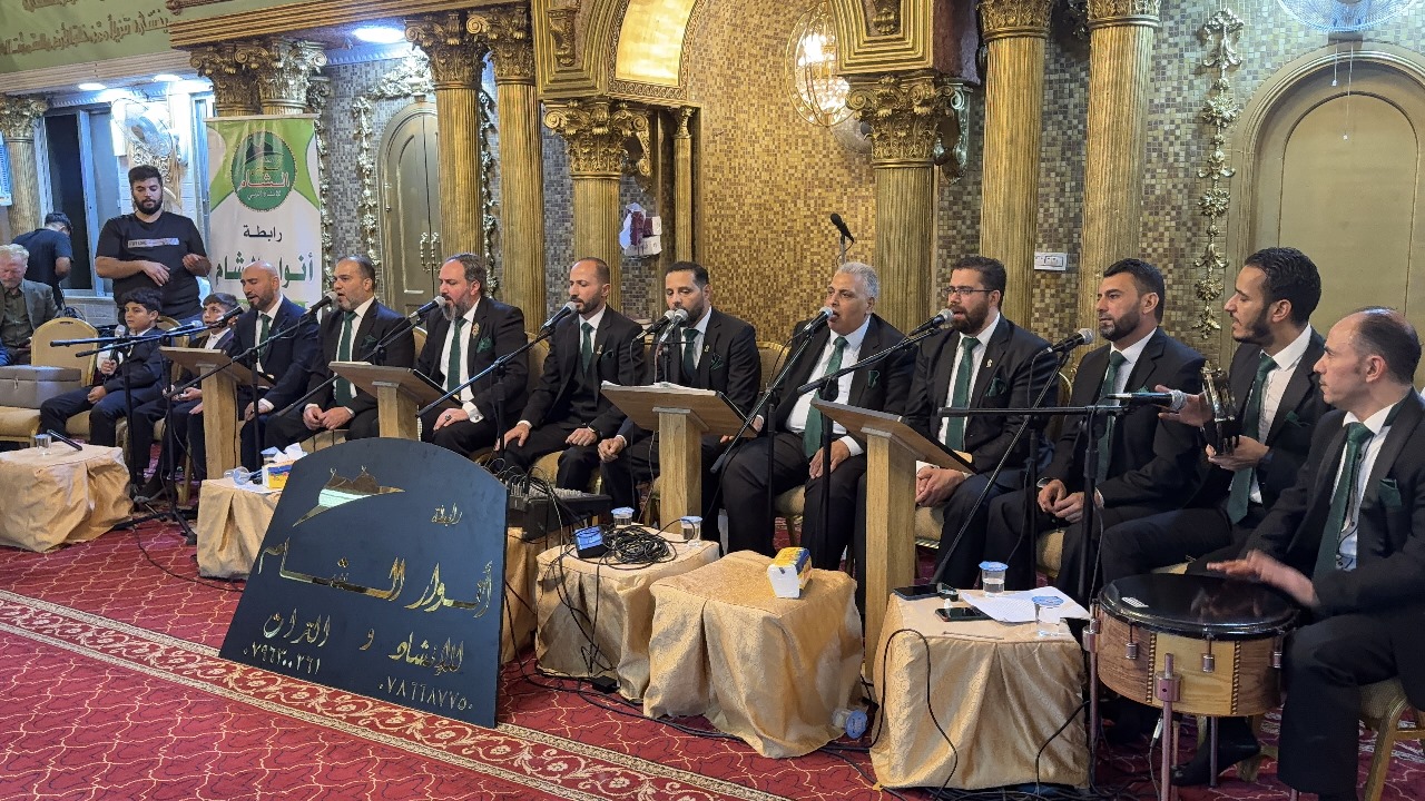 وشهد الحفل وصلات إنشادية ومدائح نبوية أحيتها رابطة أنوار الشام للإنشاد الديني بقيادة المنشدين ضياء القادي وفراس لطيفة، وسط تفاعل كبير من الحضور الذين ابدوا اعجابهم الكبير بأداء الفرقة.