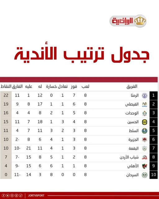 ورفع الوحدات رصيده إلى 16 نقطة في المركز الثالث، فيما يحتل السلط المركز الخامس بـ11 نقطة.