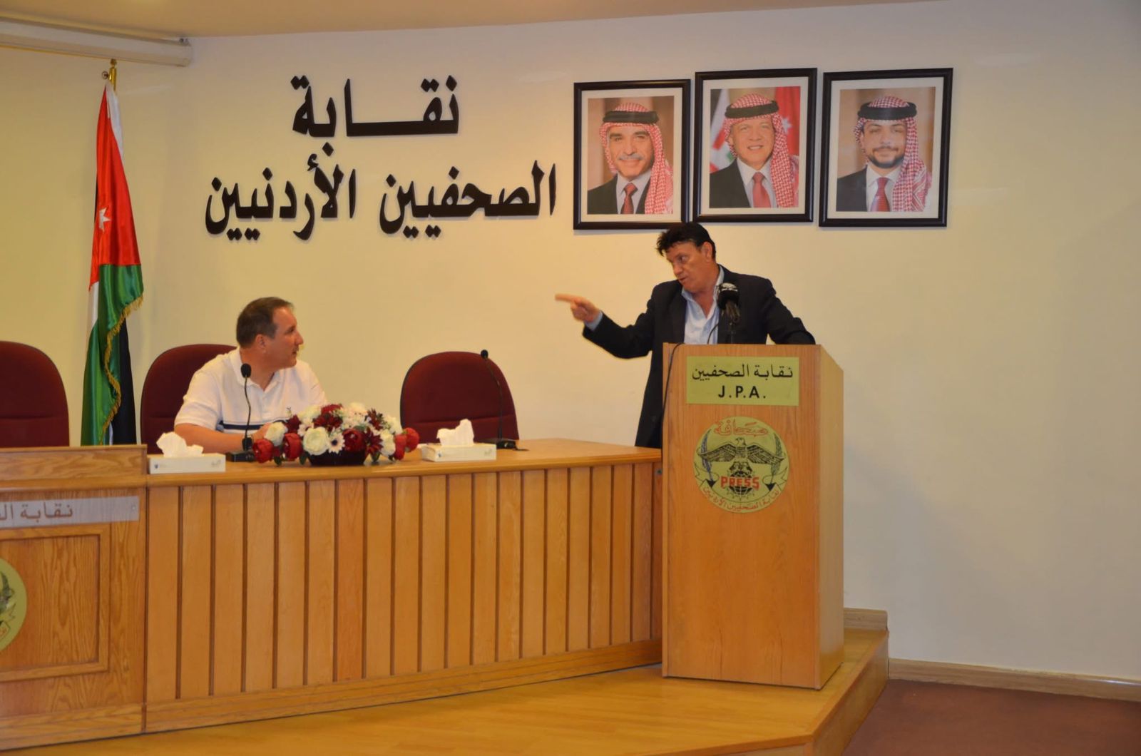 عقد ناشرو مواقع إلكترونية أردنية اجتماعا، صباح الأحد، في مبنى نقابة الصحفيين الأردنيين للتشاور حول آليات التعاطي مع نهج مجلس نقابة الصحفيين الجبائي ، وخاصة فيما يتعلّق بفرض رسم (1000) دينار سنويا على المواقع الالكترونية.