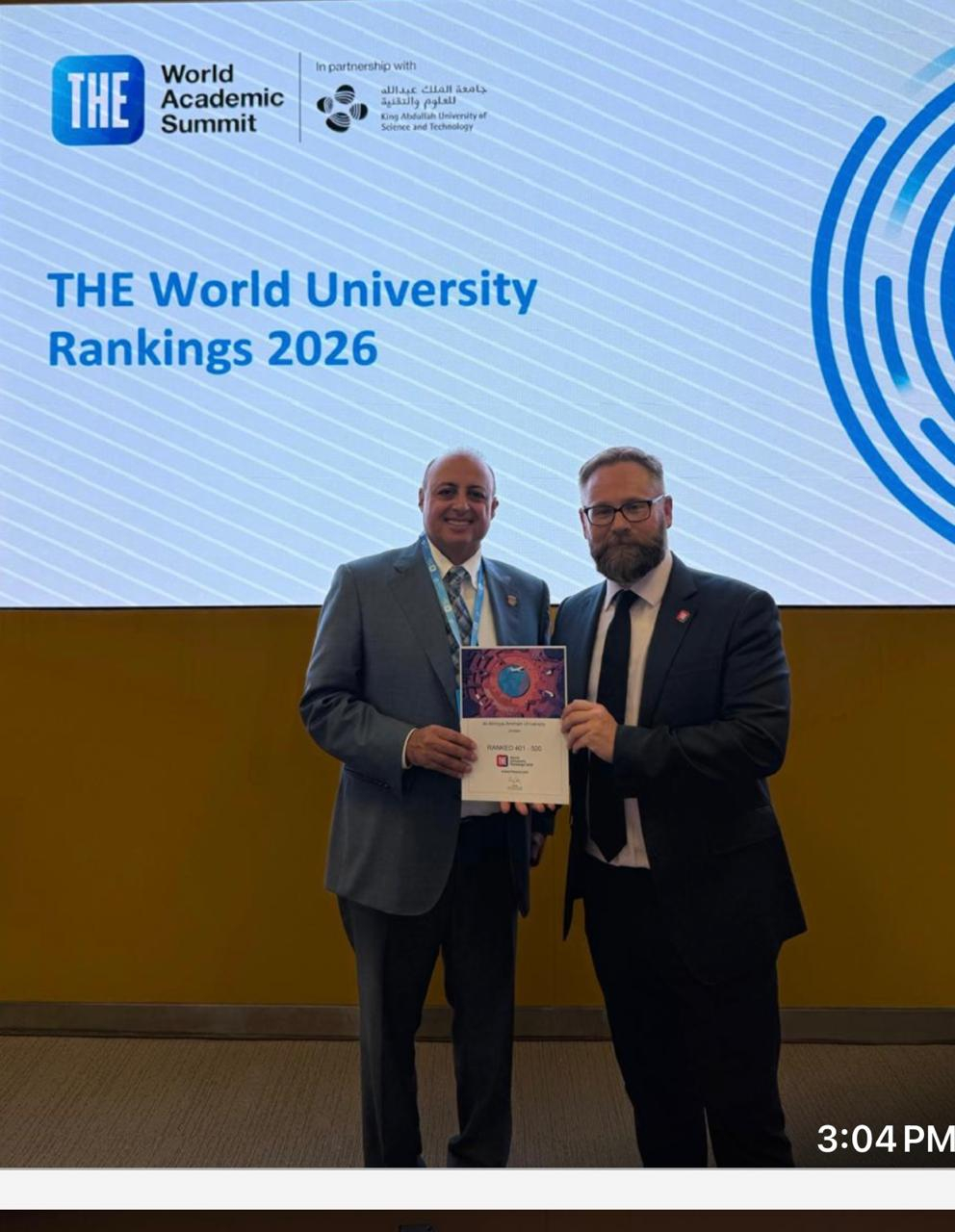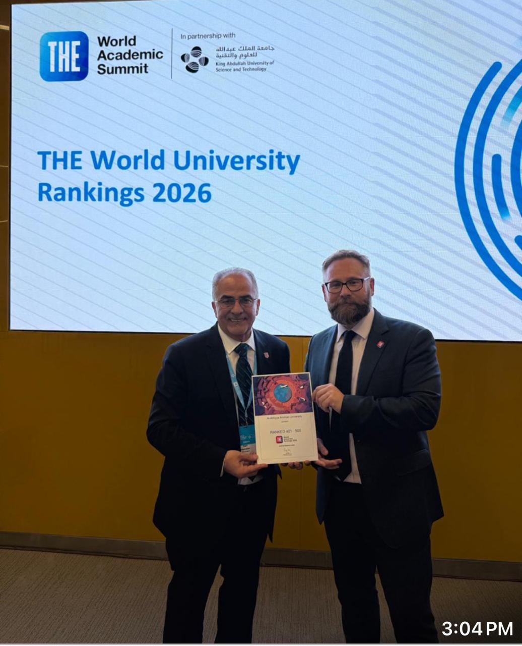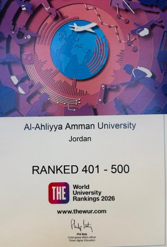 عمان الأهلية تفوز بالمركز الأول على الجامعات الأردنية و 401 -500 عالمياً بتصنيف التايمز العالمي 2026