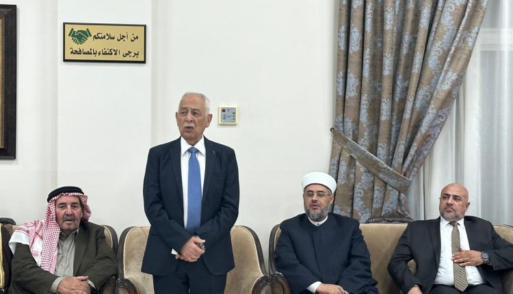 البلقاء 11 تشرين الأول 2025- مندوبا عن جلالة الملك عبدالله الثاني، وسمو الأمير الحسين بن عبدالله الثاني، ولي العهد، قدم رئيس الديوان الملكي الهاشمي يوسف حسن العيسوي، اليوم السبت، واجب العزاء إلى عشيرة أبو سليم بوفاة عمران عارف أبو سليم، شقيق أمين عام وزارة الداخلية الأسبق خميس أبو سليم.