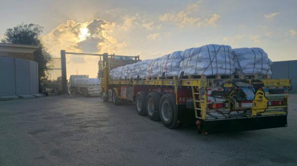 وأضافت “الشاحنات تحمل آلاف الأطنان من المواد الغذائية والإغاثية ومؤنًا ضرورية سيتم توزيعها على المخيمات، بالإضافة إلى أدوية ومستلزمات طبية لدعم القطاع الصحي في غزة، الذي يعد شبه منهار بالكامل نتيجة العدوان المتواصل”.