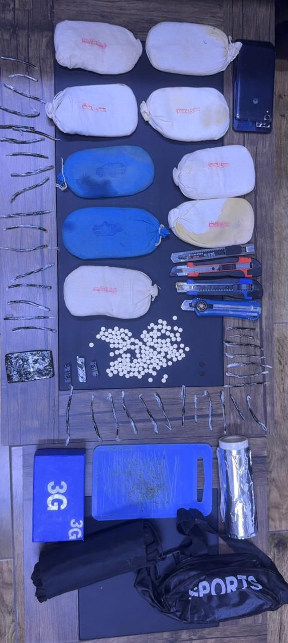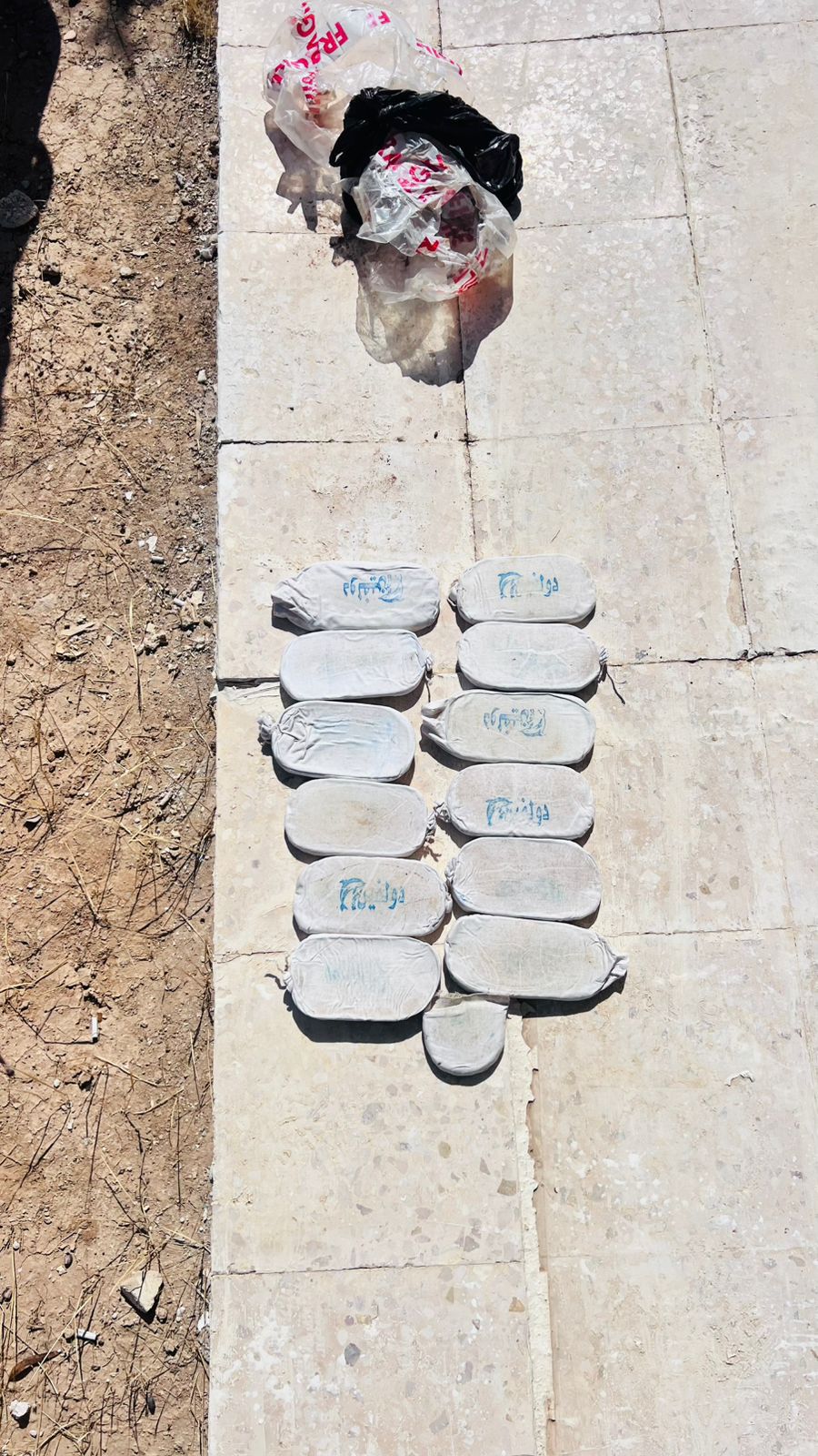 وفي محافظة العقبة وبعد جمع المعلومات حول تاجر للمخدرات والتاكد من قيامه بحيازة وتخزين كمية كبيرة من المواد المخدرة تمت مداهمته والقاء القبض عليه، وبالتحقيق معه جرى تحديد مكان إخفاء المواد المخدرة في منطقة صخرية وعرة وبتمشيط المنطقة جرى ضبط 36 كف حشيش قام باخفاءها هناك .
