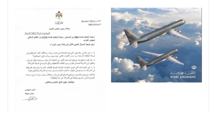 وتساءل مشوقة عمّا إذا كانت الحكومة، بصفتها المساهم الأكبر في شركة الملكية الأردنية، قد أجرت مراجعة لهيكل الرواتب والعقود في الشركة بما ينسجم مع أوضاعها المالية ويحقق التوازن في نفقاتها التشغيلية.