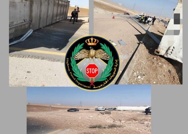 قالت إدارة الدوريات الخارجية في مديرية الأمن العام، إن كوادرها تتعامل مع حادث تدهور مركبة شحن رأس قاطرة محملة بمادة السمك على