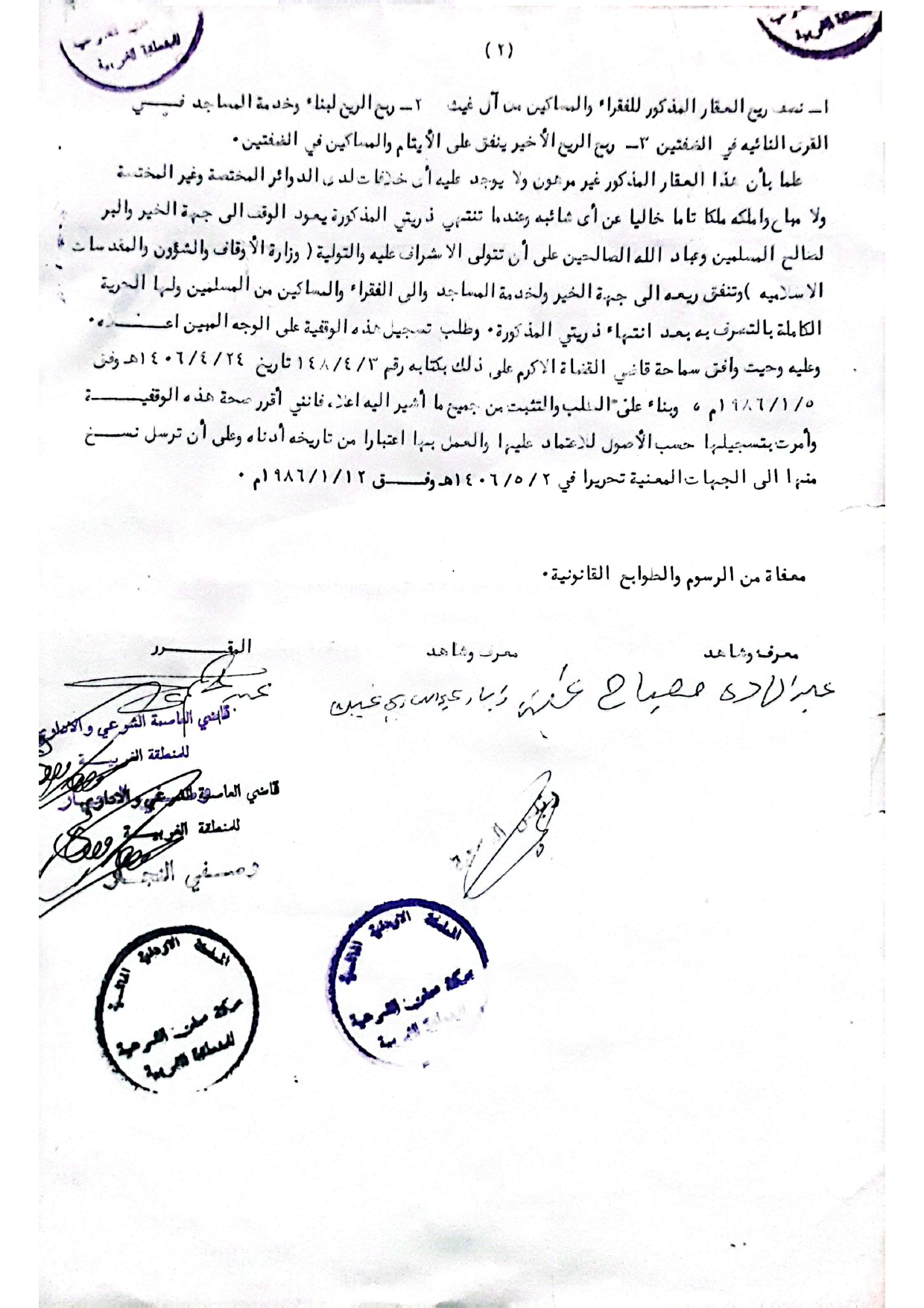 حيث أن رغبة والده في اختيار أحد أبنائه لإدارة هذه الوقفية سببه هو أن يبقى دائما من يحمل اسمه في ذاك المكان و يبقى ذكر اسمه مربوطا فيه و ذلك يتحقق فقط ببقاء الذرية و هو ما تقوم الوزارة حاليا بالتعدي عليه !!!