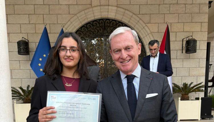 السفير الفرنسي في عمان يكرم الطالبة لمار الراميني لتفوقها بامتحان اللغة الفرنسية المدرسي