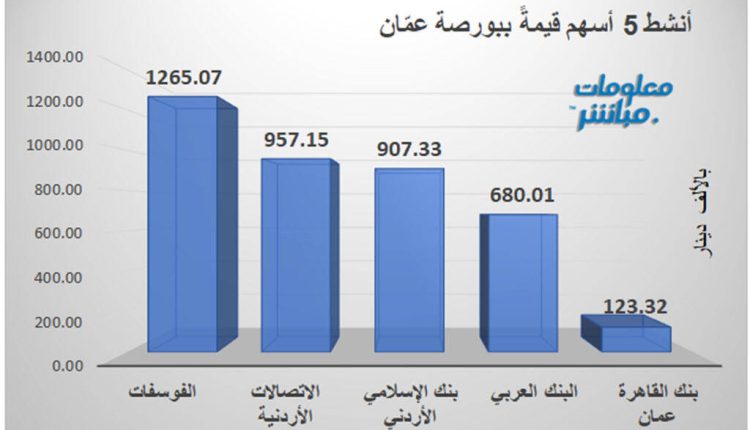 الأسهم الأنشط من حيث قيمة التداول في بورصة عمّان