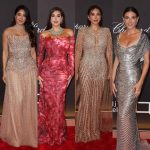 النجمة السورية مرام علي اختارت فستاناً أسود غنياً بالتفاصيل من توقيع Tony Ward، بكتفين منسدلتين يتدلّى منهما الشيفون المطرّز بخطوط طولية أنيقة. الجزء العلوي مزيّن بتطريزات دقيقة من الخرز والأحجار الداكنة، مع تنورة منسدلة بخفّة. واكتملت الإطلالة بمجوهرات Tiffany & Co وتسريحة شعر هادئة أنيقة.