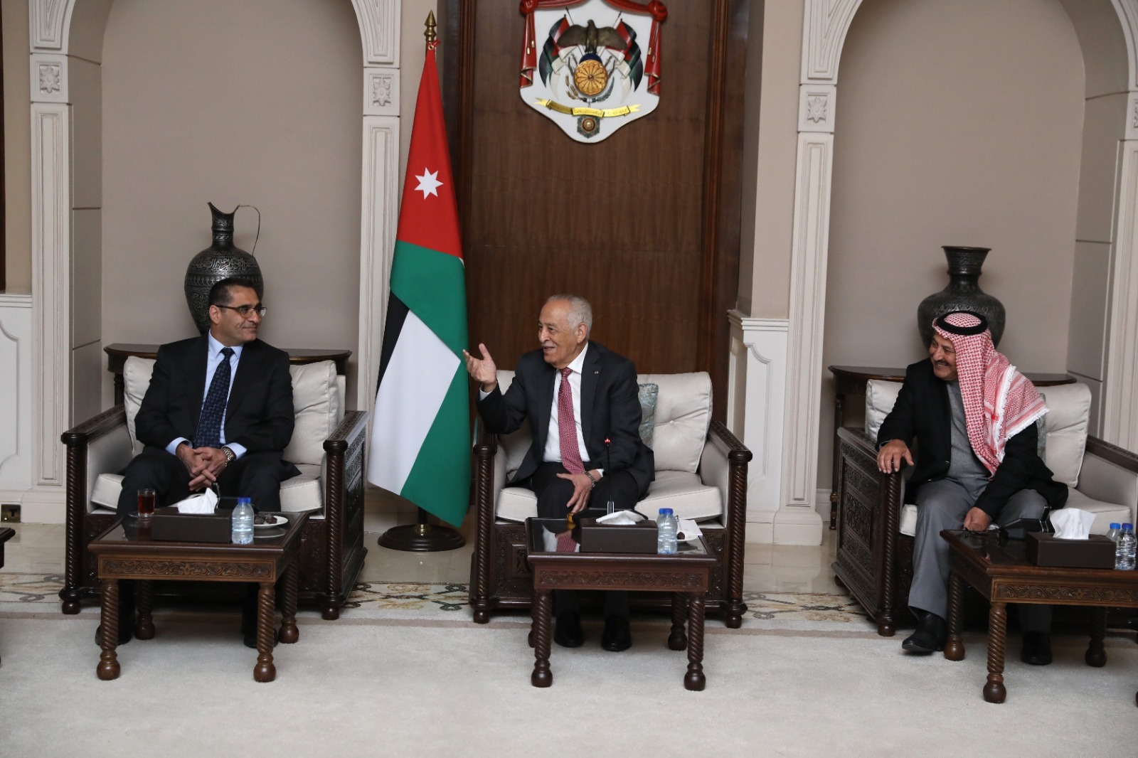 عمان – الاثنين 8 كانون الأول 2025- التقى رئيس الديوان الملكي الهاشمي يوسف حسن العيسوي، اليوم الاثنين، في الديوان الملكي الهاشمي، وفداً من أبناء عشيرة الكردي، وذلك بحضور مستشار جلالة الملك لشؤون العشائر كنيعان البلوي.