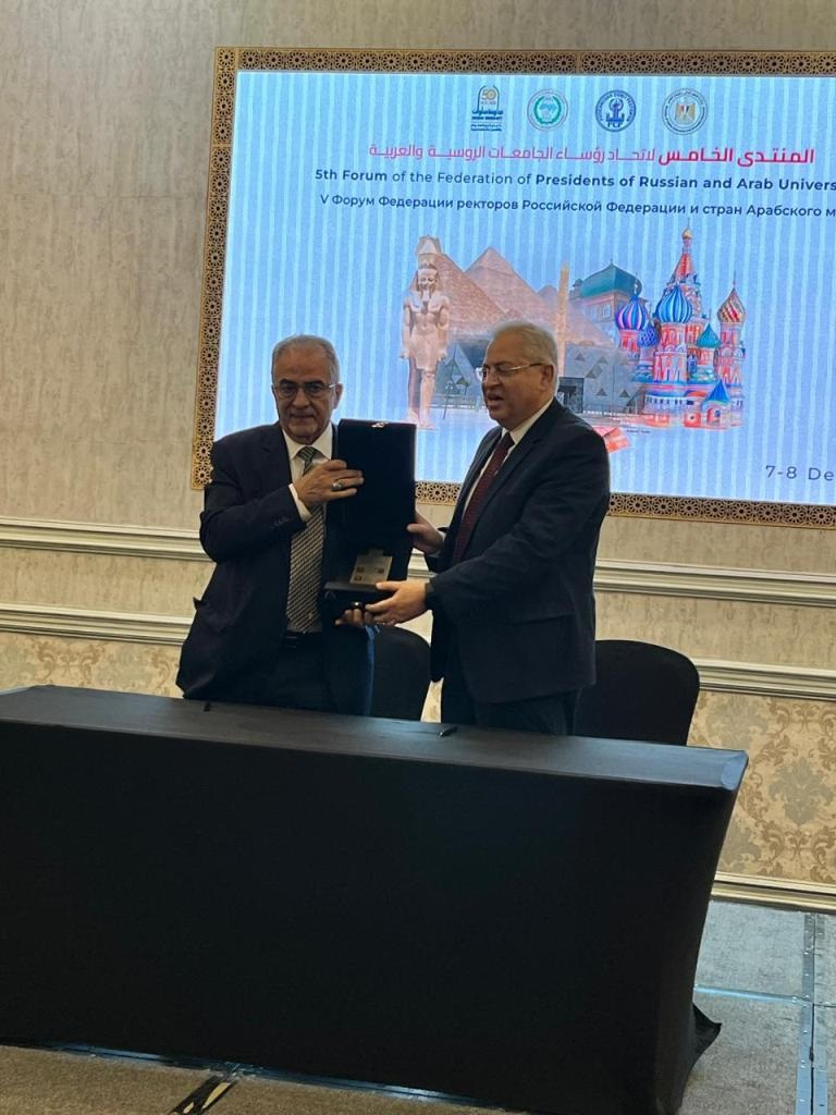 شارك رئيس جامعة عمّان الأهلية الأستاذ الدكتور ساري حمدان في أعمال المنتدى الخامس لرؤساء الجامعات العربية والروسية، الذي انطلقت فعالياته أول أمس الاثنين في جامعة العاصمة (حلوان سابقًا) بجمهورية مصر العربية، برعاية وزير التعليم العالي والبحث العلمي المصري الدكتور محمد أيمن عاشور، وبمشاركة واسعة من القيادات الأكاديمية العربية والروسية.