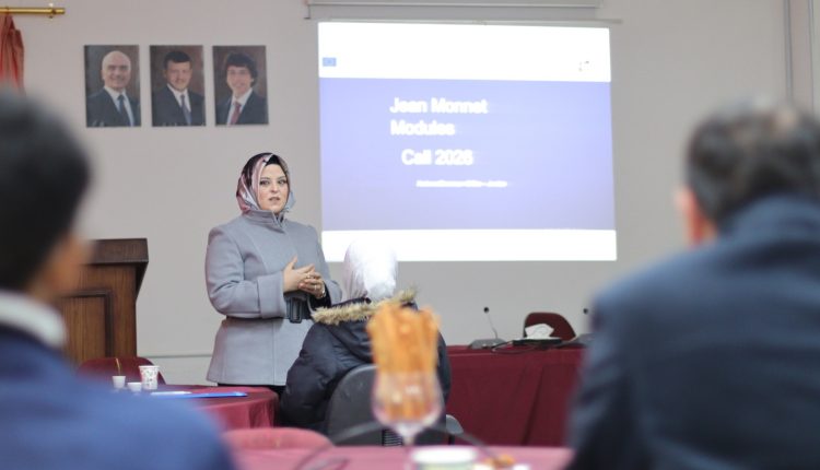 نظّم مكتب المشاريع الدولية في جامعة فيلادلفيا، بالتعاون مع عمادة البحث العلمي والدراسات العليا، مؤخرًا، ورشتي عمل متخصصتين حول برنامج جين مونيت (Jean Monnet Modules – Call 2026) وبرامج تبادل الطلبة والأكاديميين ضمن برنامج إيراسموس بلس، وذلك بحضور نائب الرئيس للشؤون المالية والإدارية الأستاذ الدكتور خالد السرطاوي و عدد من أعضاء الهيئة التدريسية والباحثين والطلبة والمهتمين من مختلف كليات الجامعة.
