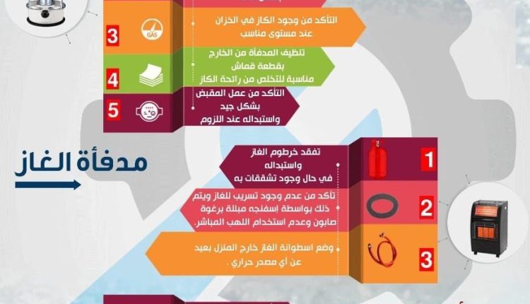 ■ الاستخدام الآمن لوسائل التدفئة على اختلاف أنواعها، وعدم تزويد المدفأة بالوقود وهي مشتعلة وعدم تركها مشتعلة أثناء النوم وضرورة توفير التهوية المناسبة بين الحين والآخر لتجديد الهواء وتقليل تراكم الغازات الضارة .