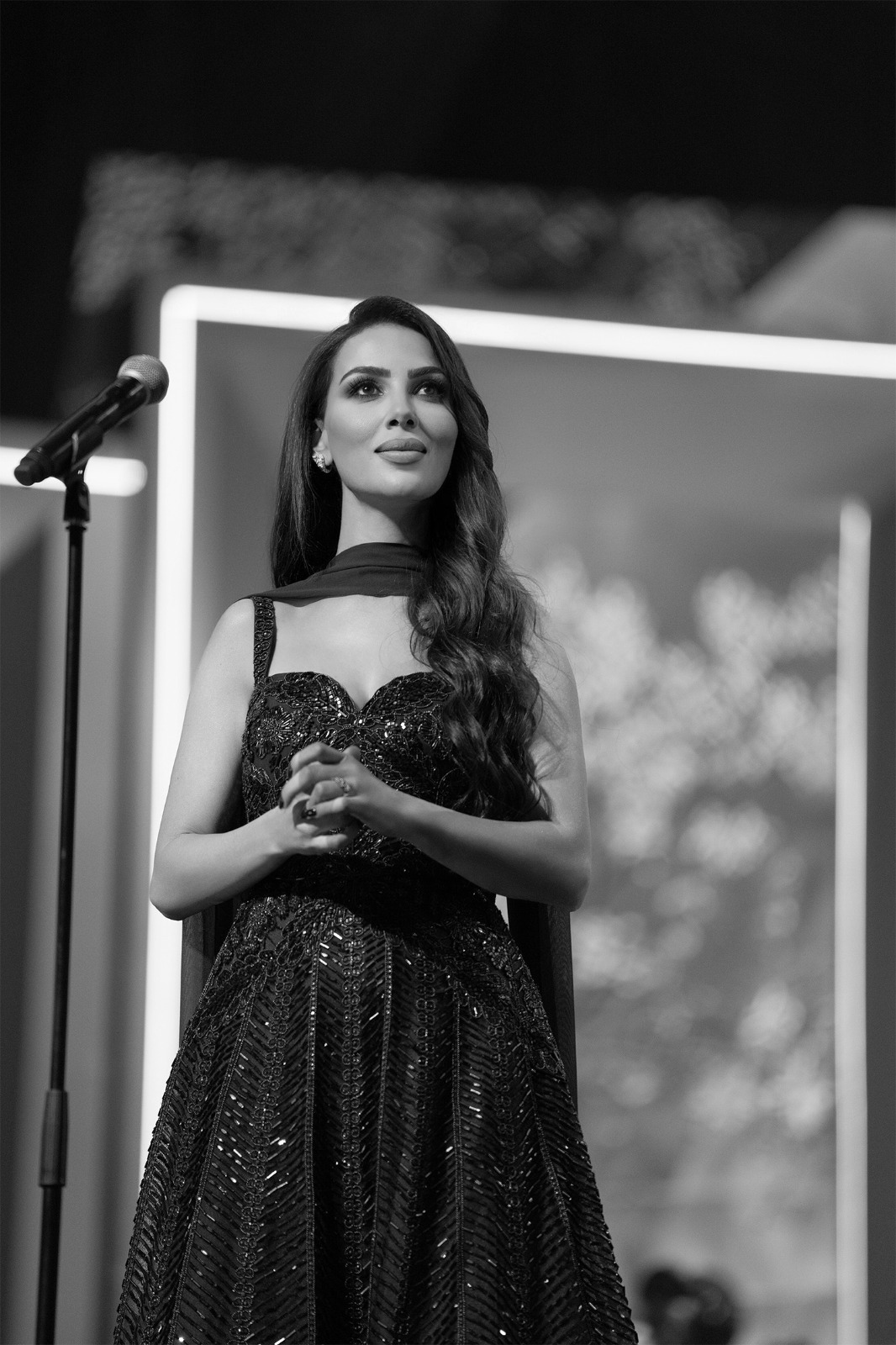 وعلى مستوى الإطلالة، اختارت شيماء فستانًا أسود مطرّزًا أنيقًا من توقيع المصمّم اللبناني العالمي إيلي صعب، جاء منسجمًا مع أجواء الحفل ومكانته الفنية الرفيعة.