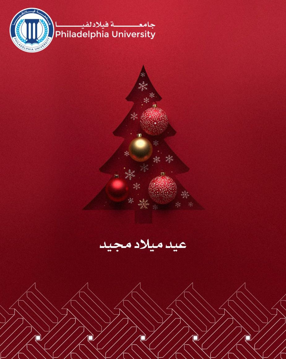 تتقدم أسرة جامعة فيلادلفيا، ممثلةً بمجلس أمنائها ومجلس إدارتها ورئيسها الأستاذ الدكتور عبدالله الجراح، بأصدق التهاني والتبريكات للإخوة المسيحيين من الأكاديميين والإداريين والطلبة، بمناسبة حلول عيد الميلاد المجيد، متمنيةً لهم عاماً مليئاً بالمحبة والخير والفرح