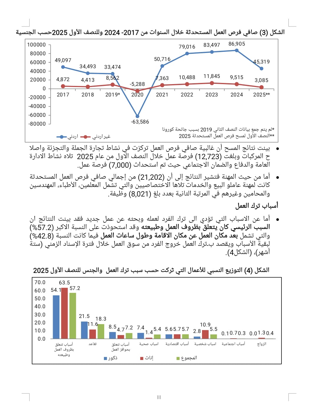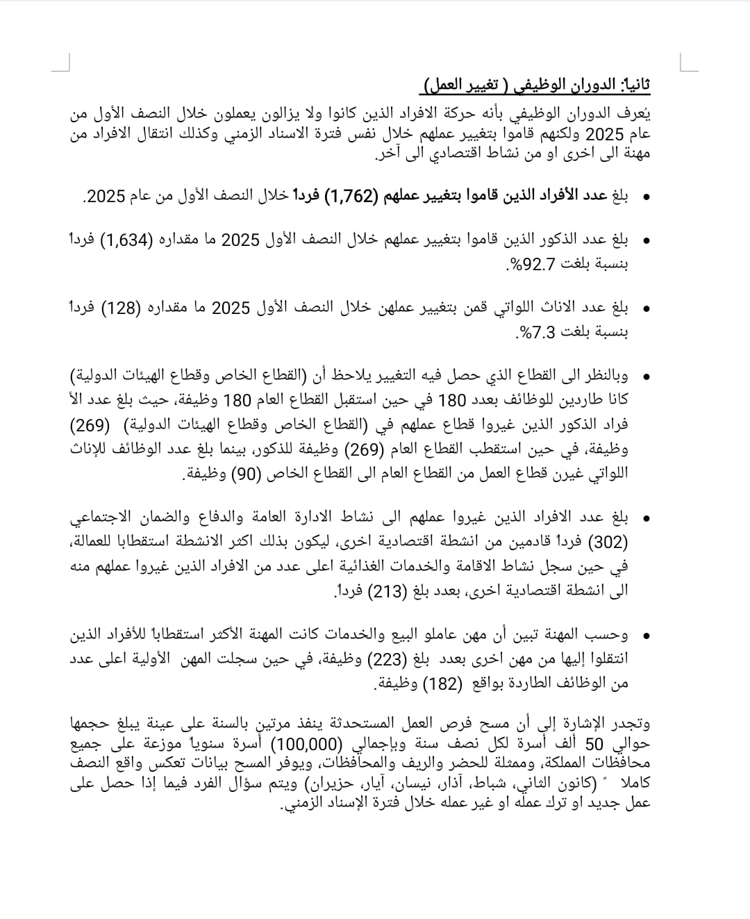 وبيّنت أن سوق العمل ما يزال يعاني من اختلالات واضحة، أبرزها هشاشة الوظائف، وضعف مسارات التطور المهني للشباب، وتراجع مشاركة النساء، وغياب العدالة الجغرافية في توزيع فرص العمل، فضلًا عن ارتفاع معدلات ترك الوظائف بسبب ظروف العمل وساعاتها وبعد مواقعها.