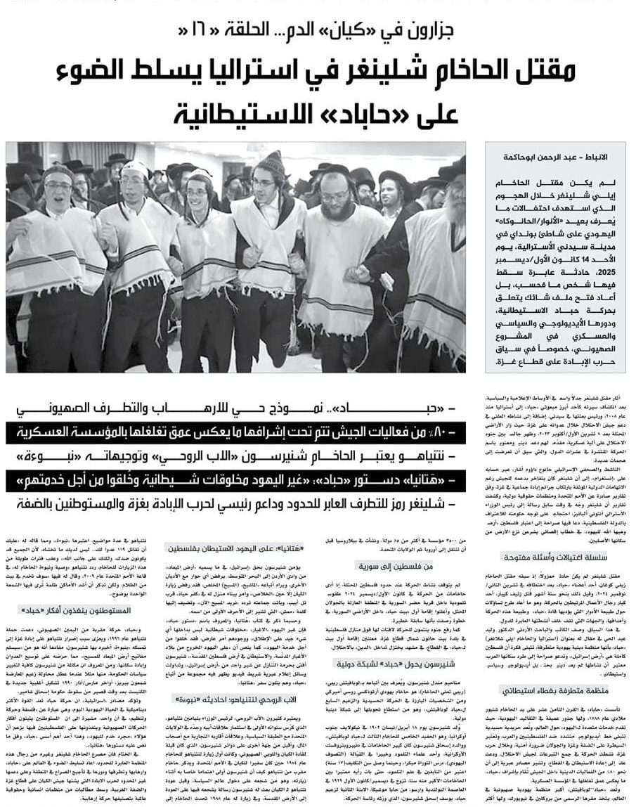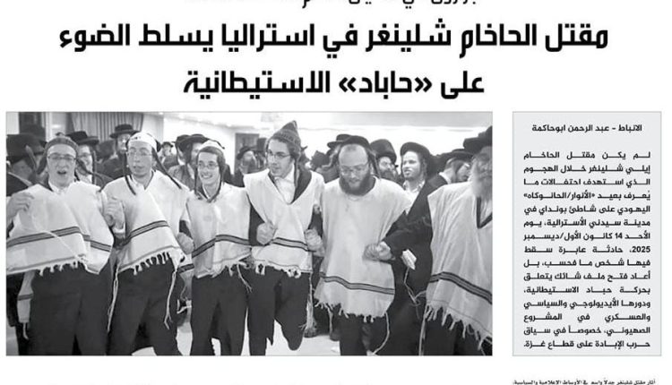 لم يكن مقتل الحاخام إيلي شلينغر خلال الهجوم الذي استهدف احتفالات ما يُعرف بعيد “الأنوار/الحانوكاه” اليهودي على شاطئ بونداي في مدينة سيدني الأسترالية، يوم الأحد 14 كانون الأول/ديسمبر 2025، حادثة عابرة سقط فيها شخص ما فحسب، بل أعاد فتح ملف شائك يتعلق بحركة حباد الاستيطانية، ودورها الأيديولوجي والسياسي والعسكري في المشروع الصهيوني، خصوصاً في سياق حرب الإبادة على قطاع غزة.