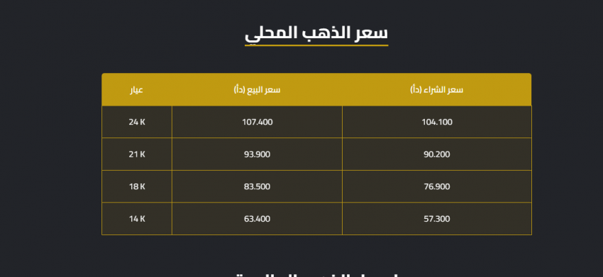 وبلغ سعر الغرام الواحد من الذهب عيارات 24 و18 و14 لغايات البيع من محلات الصاغة عند 107.4 83.5 63.0 دينارا على التوالي.