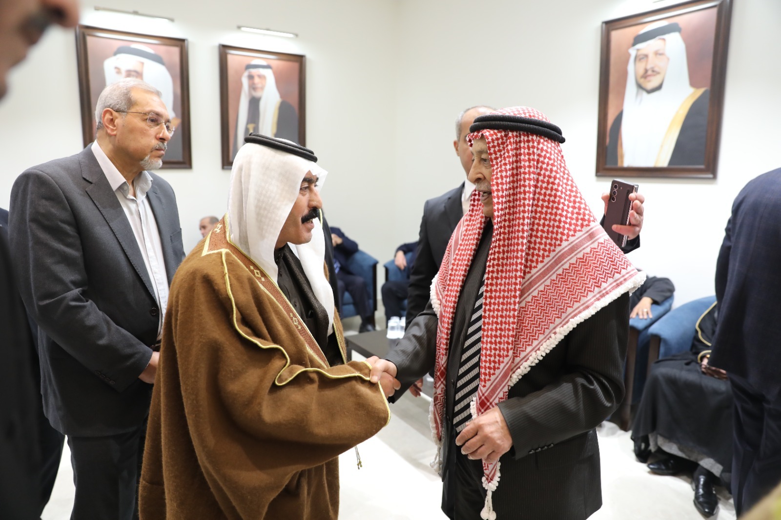 كما قدّم واجب العزاء دولة رئيس الوزراء الدكتور جعفر حسان، ودولة رئيس مجلس الأعيان فيصل الفايز، ومعالي رئيس مجلس النواب مازن القاضي، وعطوفة رئيس هيئة الأركان المشتركة اللواء الركن يوسف الحنيطي، وعطوفة مدير دائرة المخابرات العامة اللواء أحمد حسني، وعطوفة مدير الأمن العام اللواء عبيدالله المعايطة، إلى جانب عدد من الشيوخ والوجهاء من مختلف محافظات المملكة.
