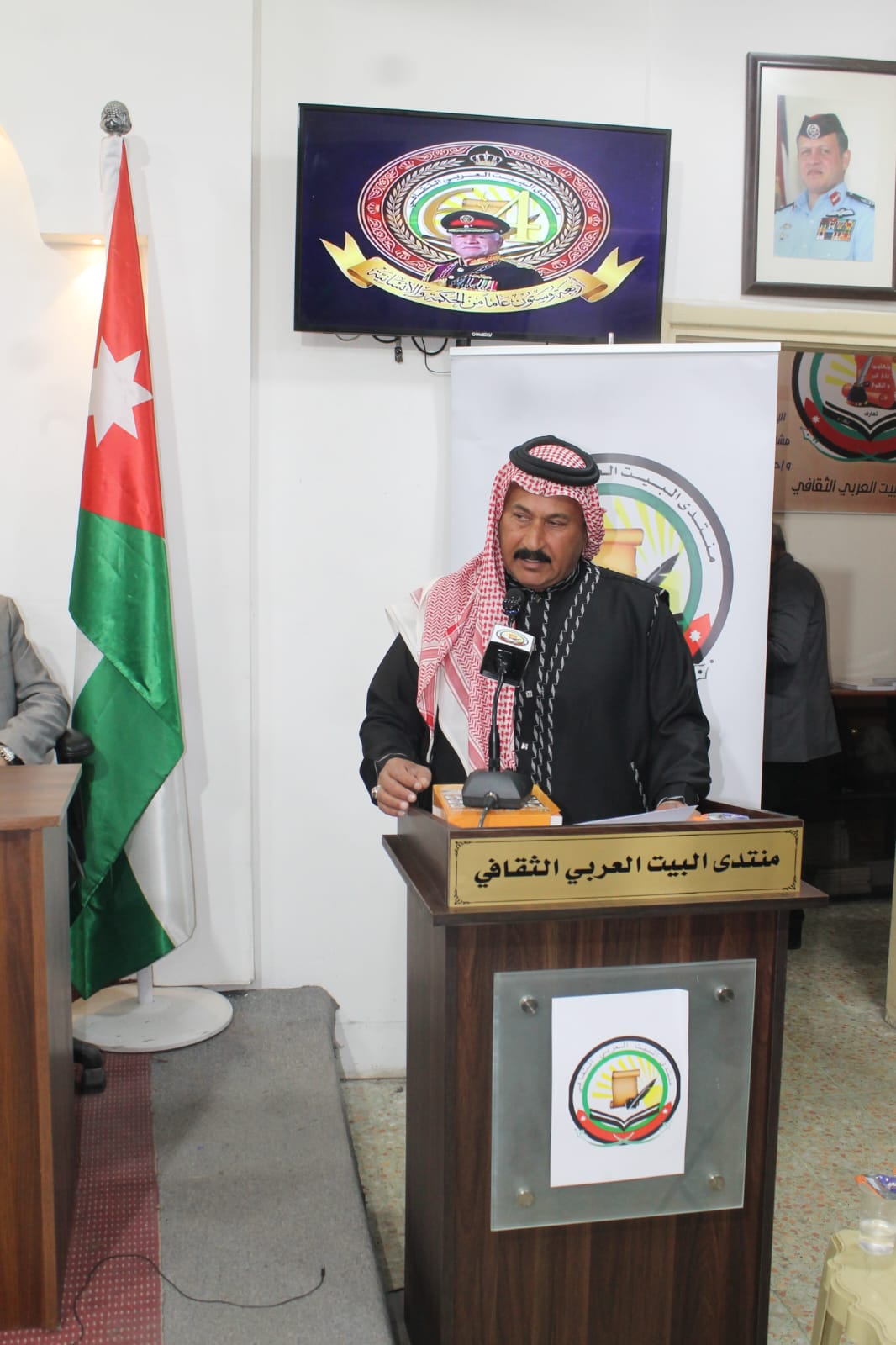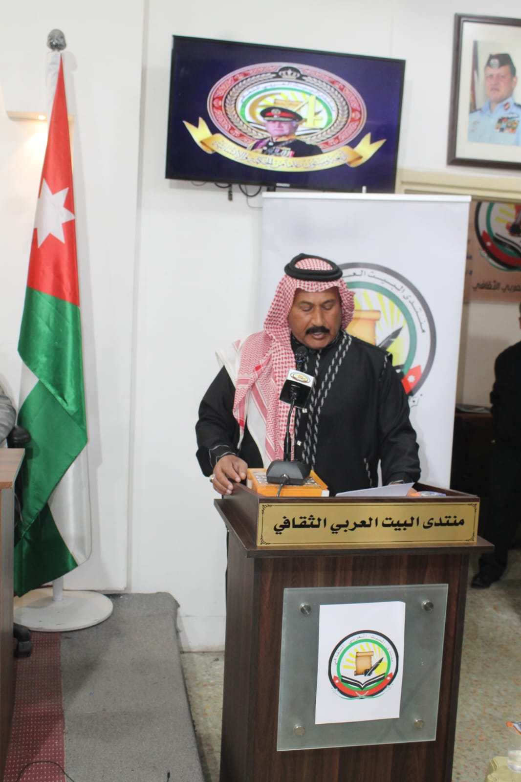 وافتُتحت الأمسية بكلمة لرئيس منتدى البيت العربي الثقافي، الأستاذ صالح الجعافرة، أكد فيها أن الثقافة تنطلق من حب الوطن، وأن الكلمة المخلصة تشكّل ركيزة أساسية في ترسيخ قيم الانتماء والولاء، مشيرًا إلى أهمية الاحتفاء بالمناسبات الوطنية عبر الفعل الثقافي المسؤول.