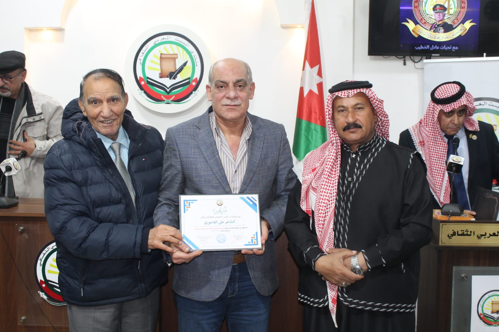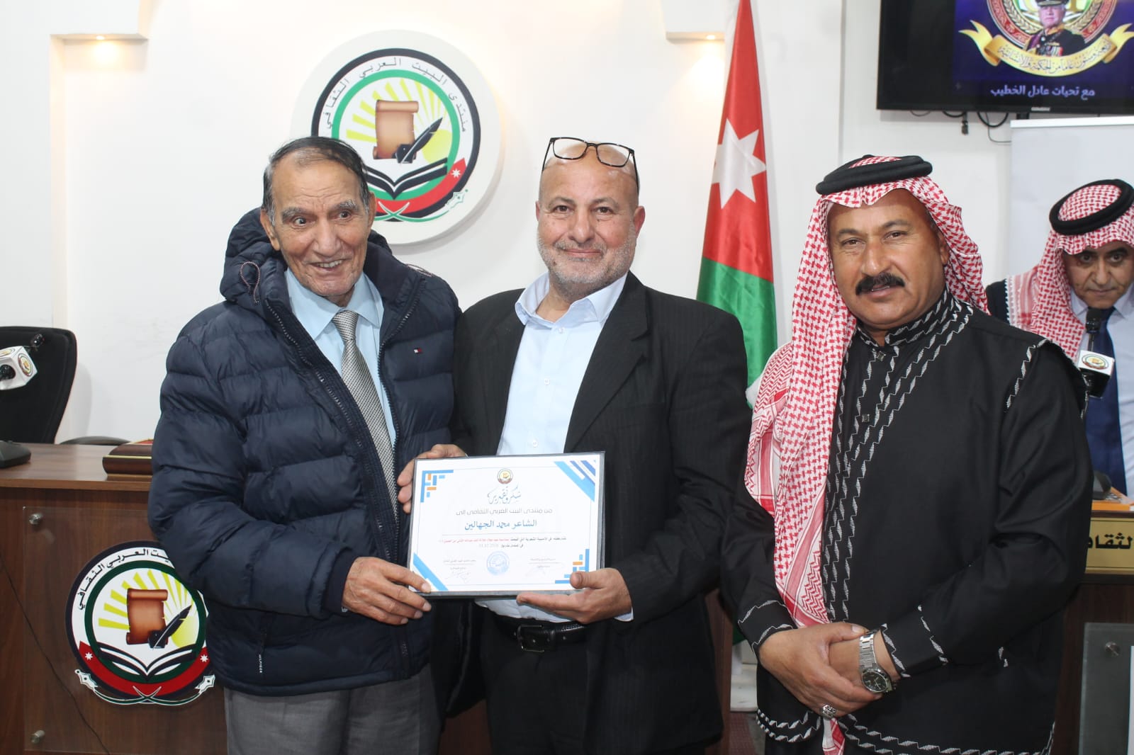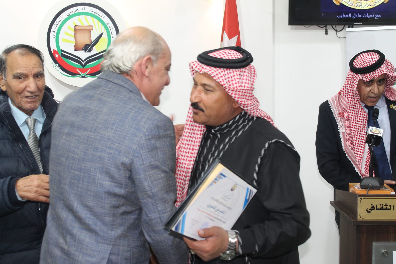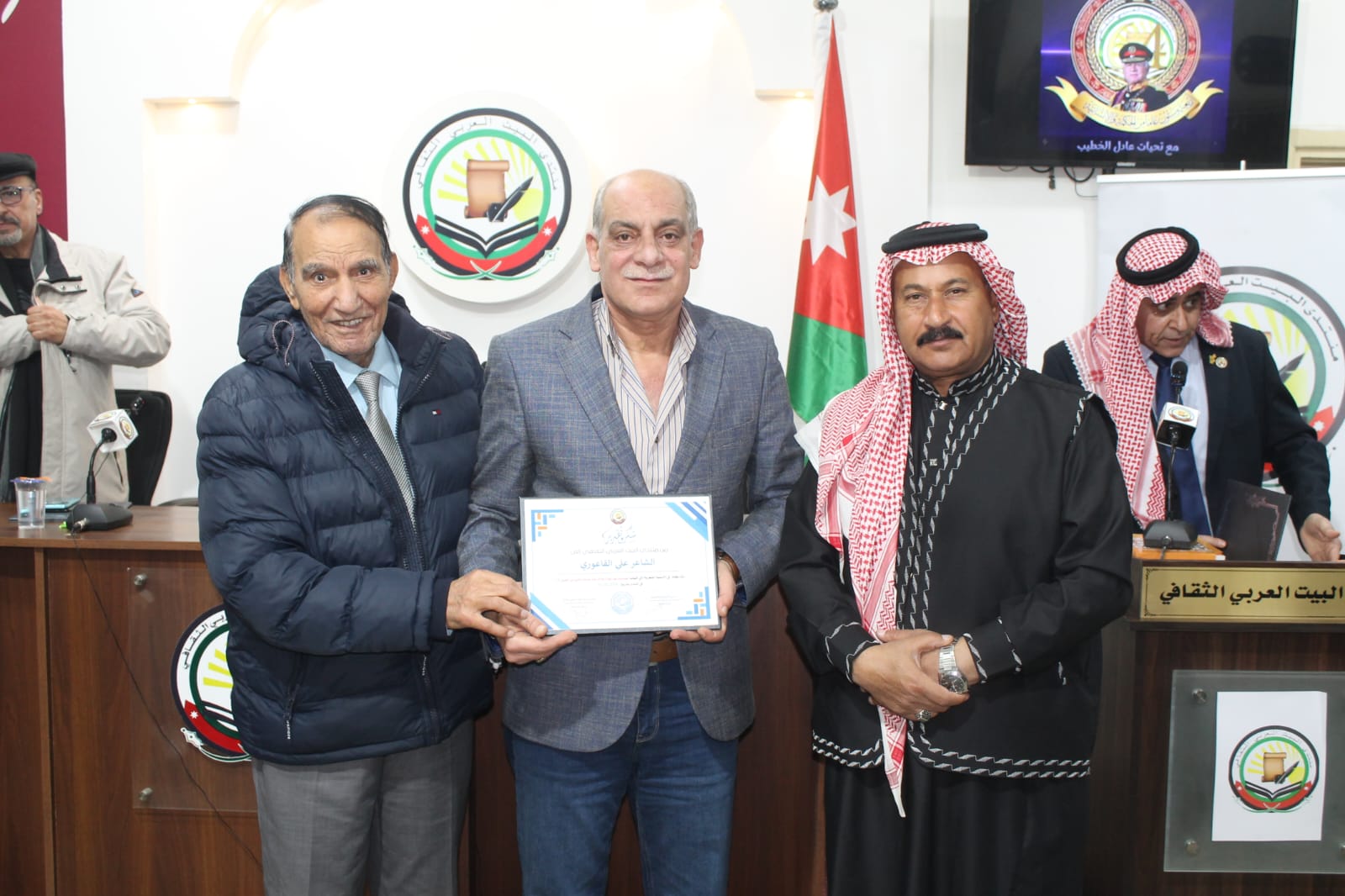 وفي ختام الفعالية، جرى تكريم الشعراء المشاركين، من قبل معالي الدكتور طه الهباهبه ورئيس منتدى البيت العربي الثقافي الاستاذ صالح الجعافرة تقديرًا لعطائهم الأدبي ومساهمتهم في إثراء المشهد الثقافي الوطني، مؤكدين أن مثل هذه الأمسيات تمثل مساحة حقيقية للاحتفاء بالكلمة الوطنية الصادقة.
