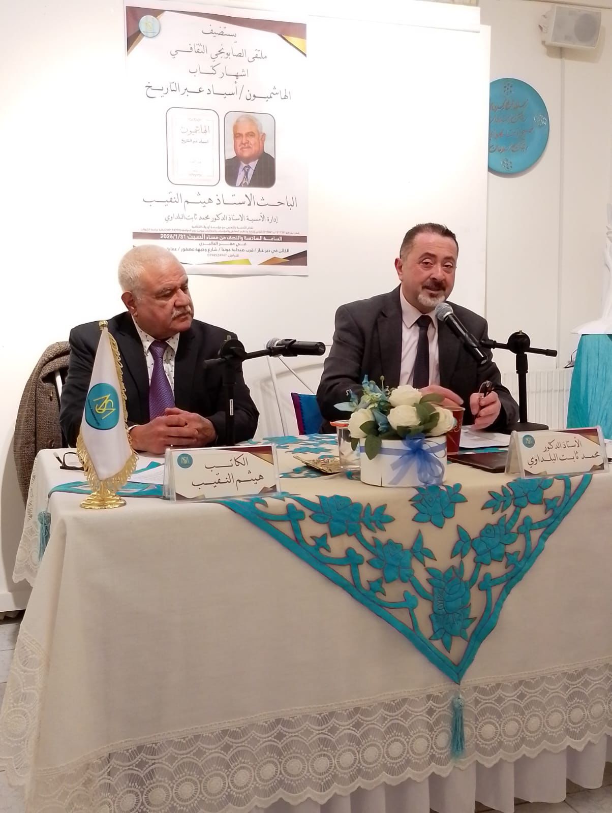 عمان – نظم ملتقى الصابونجي الثقافي، يوم السبت، حفل إشهار كتاب «الهاشميون… أسياد عبر التاريخ» للباحث الأستاذ هيثم النقيب،المقيم في كندا بحضور نخبة من المثقفين والباحثين والمهتمين بالشأنين التوثيقي والتاريخي.
