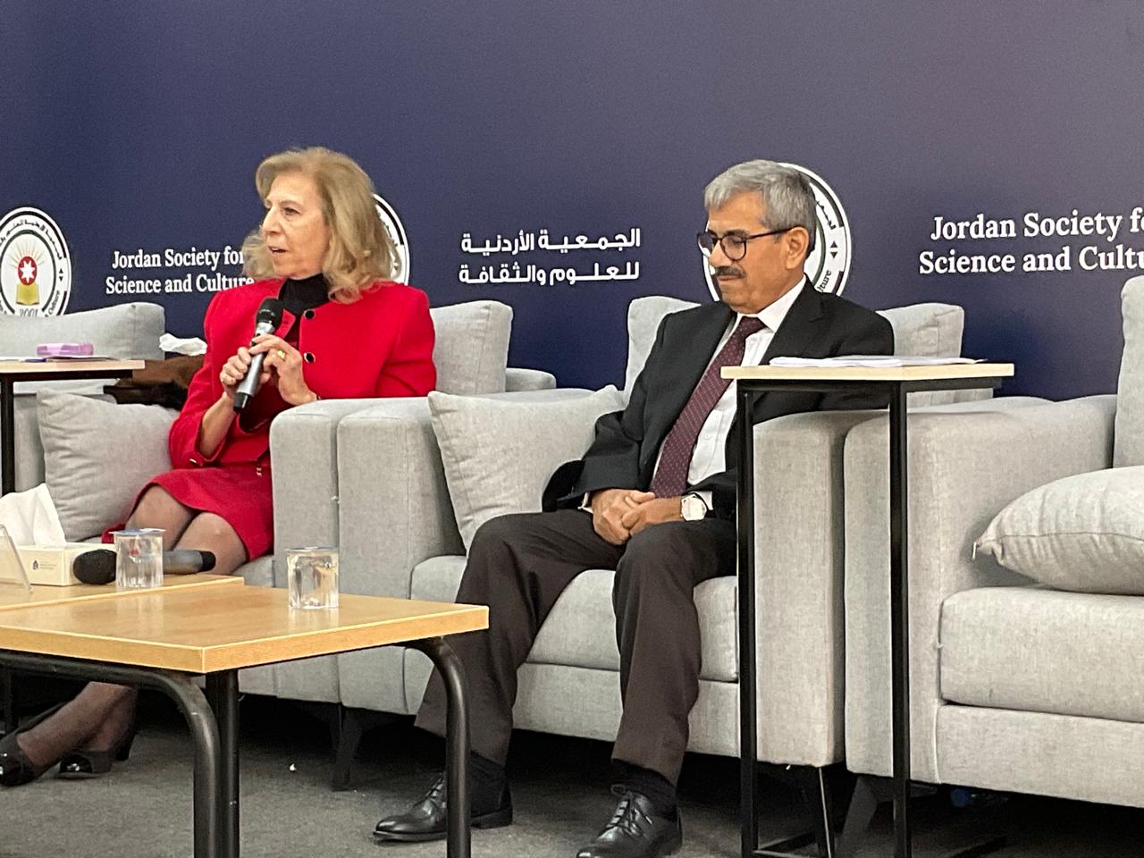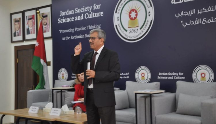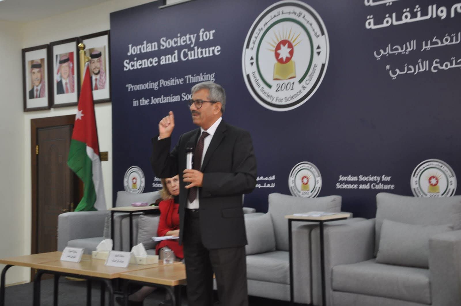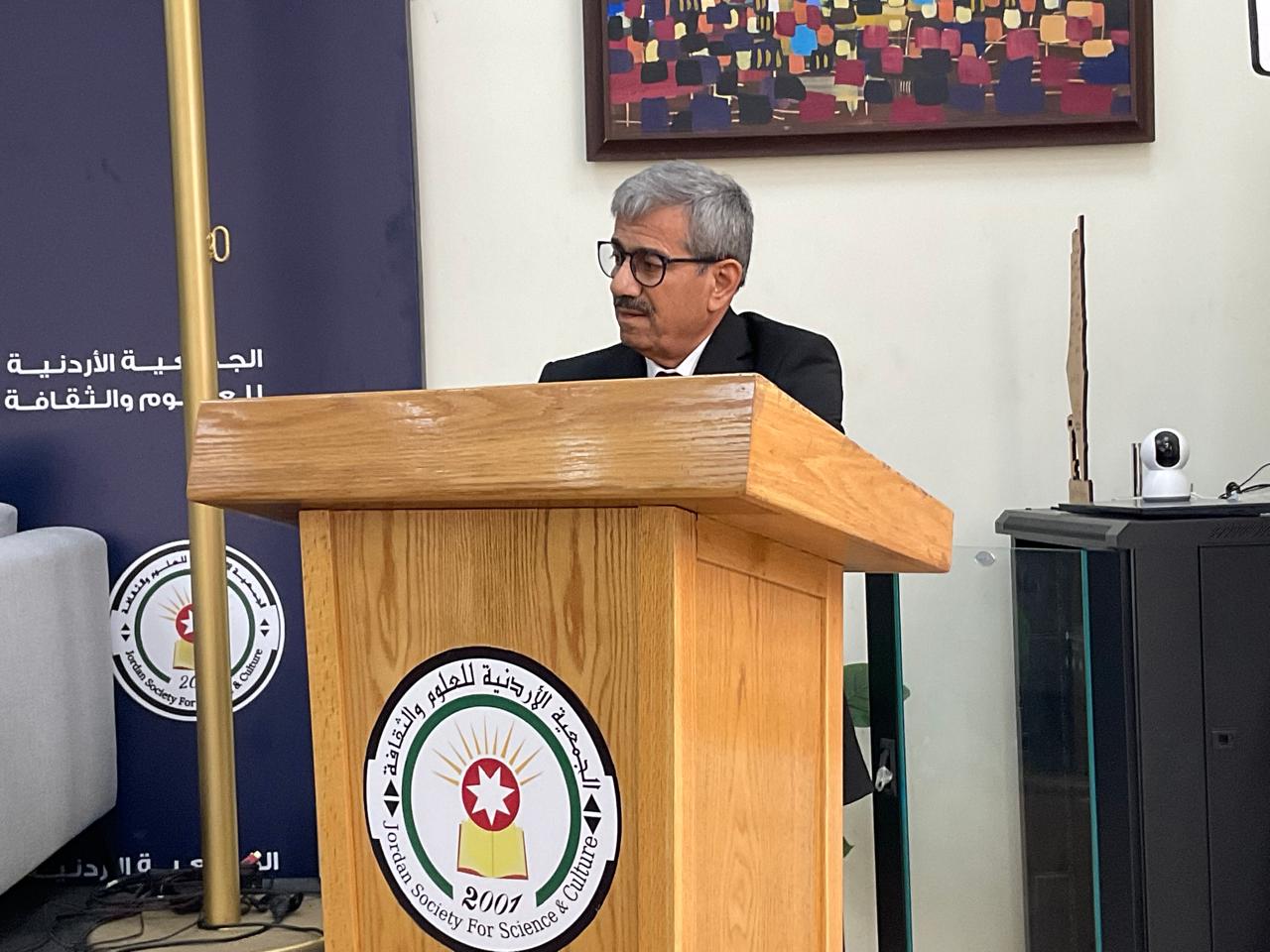 وسط حضور لافت من المهتمين بالشأن السياسي والعربي عقدت الجمعية الأردنية للعلوم والثقافة ظهر السبت الفائت ندوة بعنوان تطورات المشهد الفلسطيني وقرارات الكابينيت الصهيوني حاضر فيها الكاتب السياسي حمادة فراعنة المختص في الشأن الفلسطيني والاسرائيلي وقدمه فيها الكاتبة والأديبة فلومين نصار عضو الجمعية .