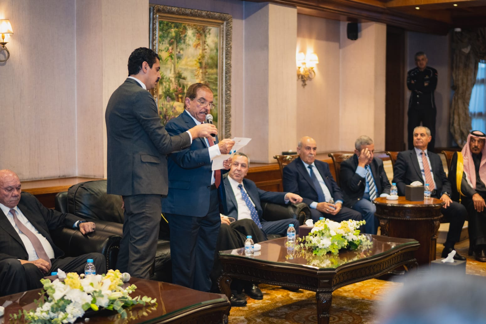 وطلب باسم عائلة الرفاعي، دولة رئيس مجلس الأعيان الشيخ فيصل عاكف الفايز، مشيداً بالتاريخ الوطني للعائلتين وما يجمعهما من قيم الأصالة والخدمة العامة، فيما ردّ بالقبول باسم عشيرة الكعابنة الفريق المتقاعد غازي باشا الطيب، مؤكداً عمق الروابط والاحترام المتبادل، ومشيراً إلى ما يتمتع به والد العروس الدكتور خالد عبدالحافظ الكعابنة من مكانة وأخلاق وعلم مشهود.