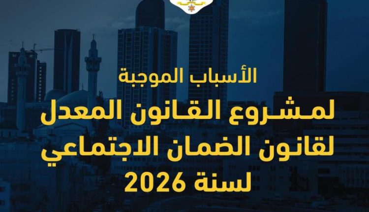 قرَّر مجلس الوزراء في جلسته التي عقدها اليوم الثُّلاثاء، برئاسة رئيس الوزراء الدكتور جعفر حسَّان، الموافقة على الأسباب الموجبة لمشروع قانون معدِّل لقانون الضَّمان الاجتماعي لسنة 2026م.