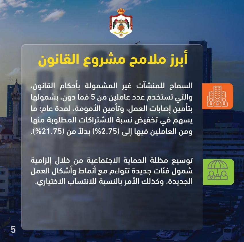 * مشروع القانون يسهم في تعزيز منظومة الحماية الاجتماعية وتوسيعها بشمول فئات جديدة