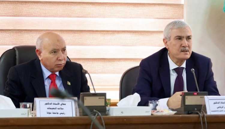 عقد الأمين العام للمجلس الأعلى للعلوم والتكنولوجيا الأستاذ الدكتور مشهور الرفاعي في جامعة مؤتة لقاء تعريفيا لعمداء وأعضاء مجالس البحث العلمي في جامعات الجنوب بهدف إطلاعهم على نتائج مشروع أولويات البحث العلمي الوطنية للأعوام 2026–2035 الذي نفّذه المجلس الأعلى وتعريفهم بمنهجية وآلية عمل صندوق دعم البحث العلمي والابتكار الجديدة.