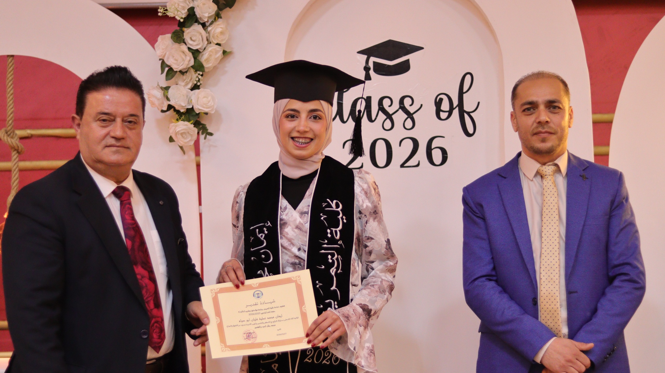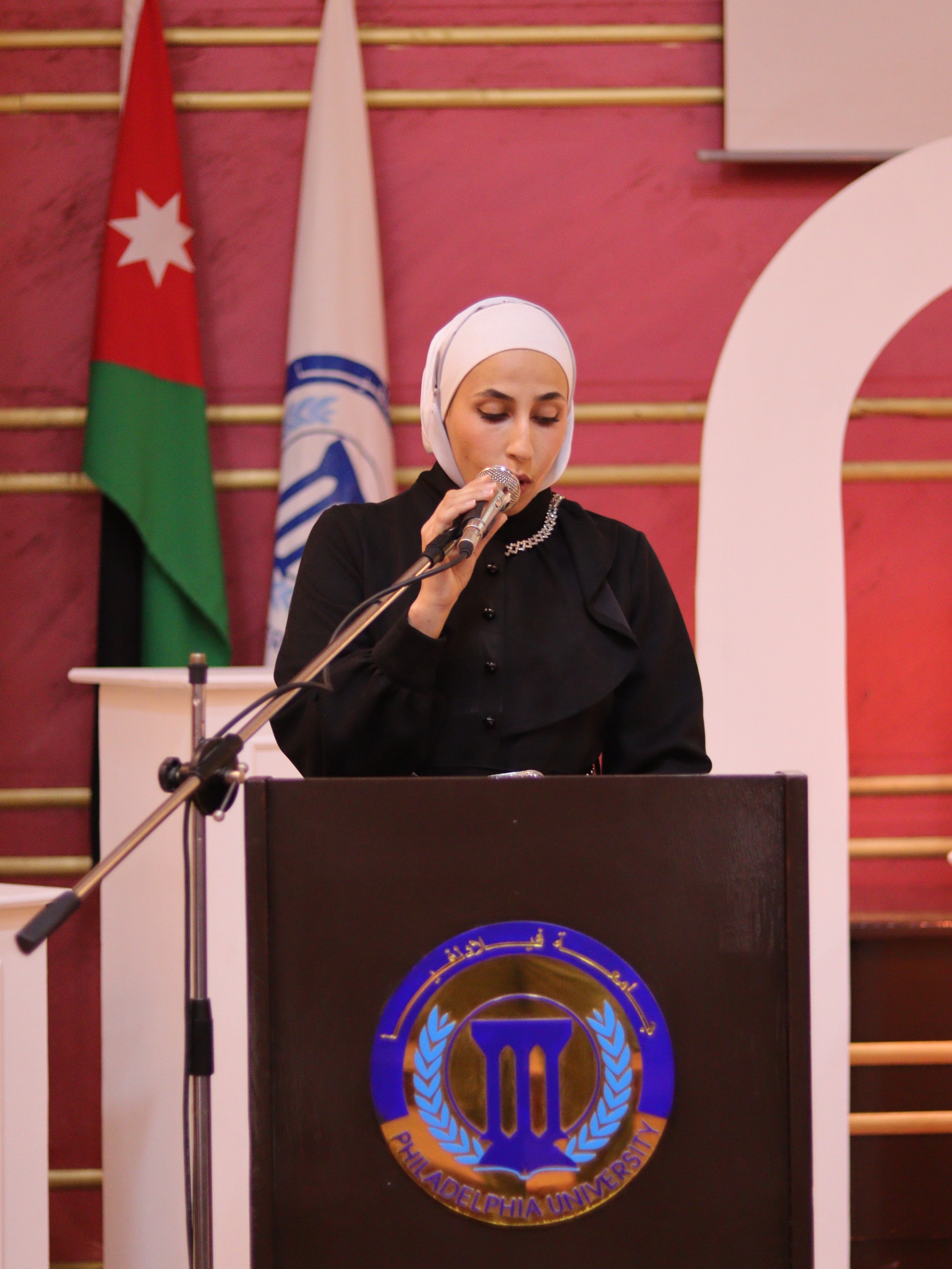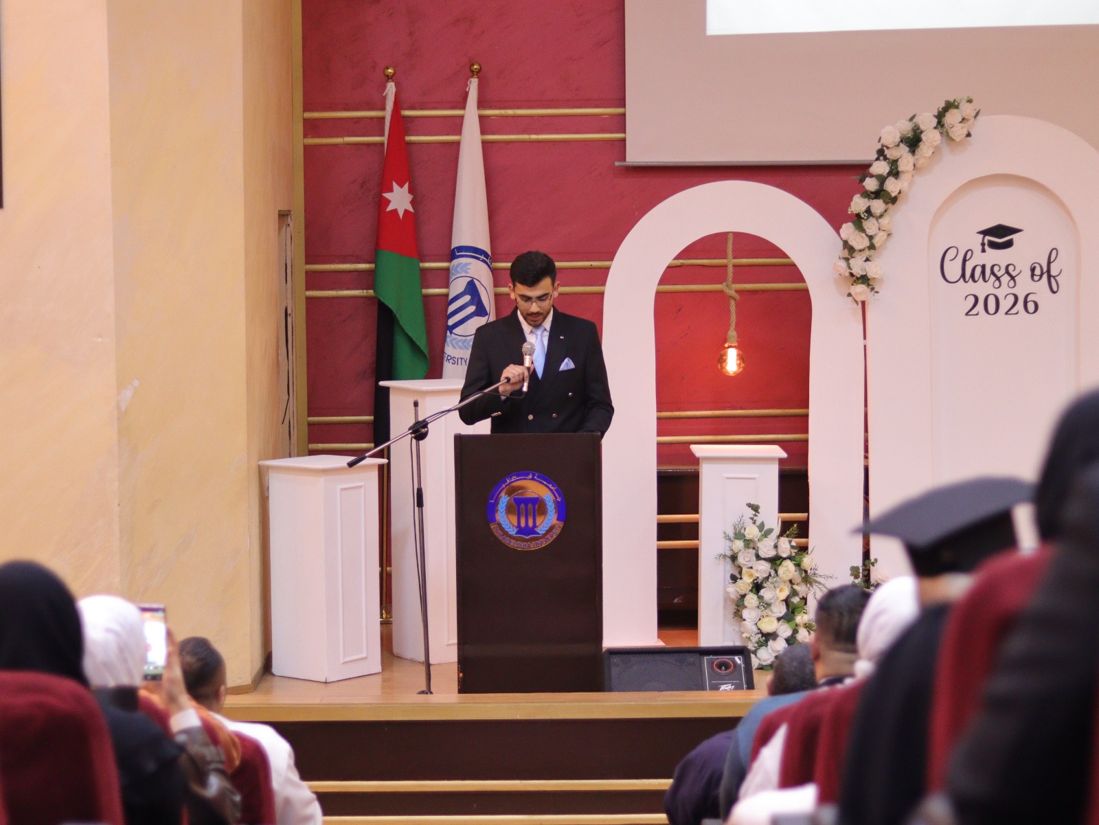 كما ألقى الخريجان عبد الله الصمادي ورزان العويدي كلمة الخريجين، عبّرا فيها عن اعتزازهما بهذه المرحلة المفصلية في مسيرتهما الأكاديمية، مثمّنين جهود أعضاء الهيئة التدريسية ودعم ذويهم طوال سنوات الدراسة.