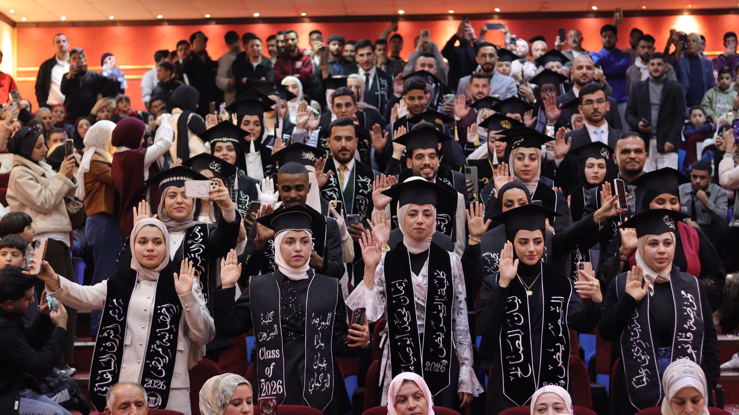وألقى عميد كلية التمريض الدكتور عماد الجراح كلمة في مستهل الحفل، رحّب فيها بالطلبة وذويهم، مهنئاً الخريجين على هذا الإنجاز، ومؤكداً أهمية مواصلة العطاء والتميز والإبداع وفق منهجية علمية رصينة، بما يسهم في إعداد كوادر تمريضية مؤهلة وقادرة على دخول سوق العمل بكفاءة واقتدار، وتعزيز حضور الكلية محلياً وإقليمياً ودولياً.