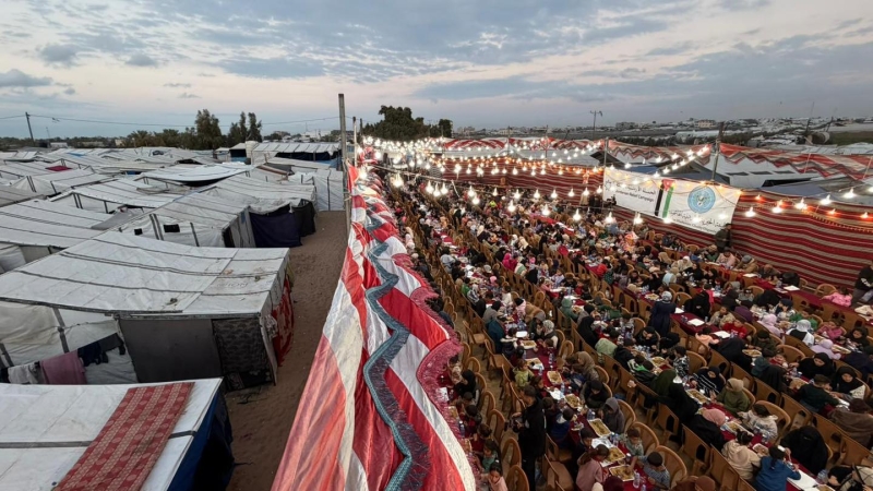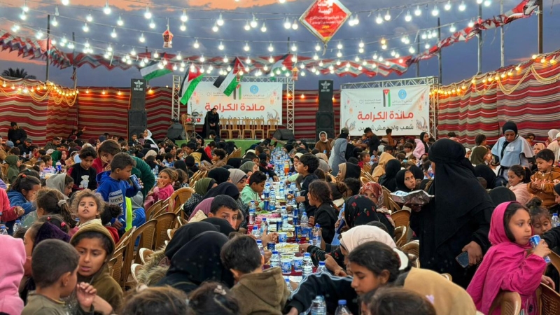 أقامت الهيئة الخيرية الأردنية الهاشمية وبالتعاون مع الحملة الأردنية أكبر إفطار جماعي لـ ٨٠٠ عائلة في مخيم البركة – مواصي خانيونس.