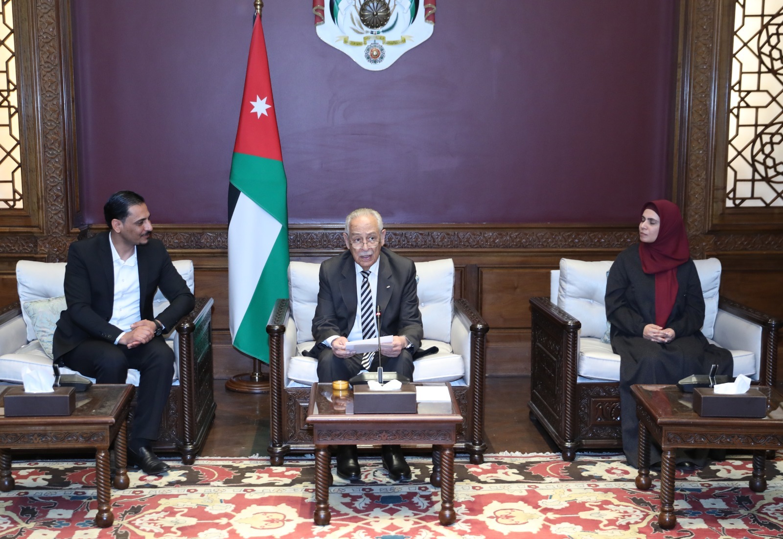 *عمان – الخميس 26 شباط 2026-* التقى رئيس الديوان الملكي الهاشمي يوسف حسن العيسوي، اليوم الخميس، وفداً شبابياً يمثل جمعية أهل الجبل للتنمية البشرية، في الديوان الملكي الهاشمي.
