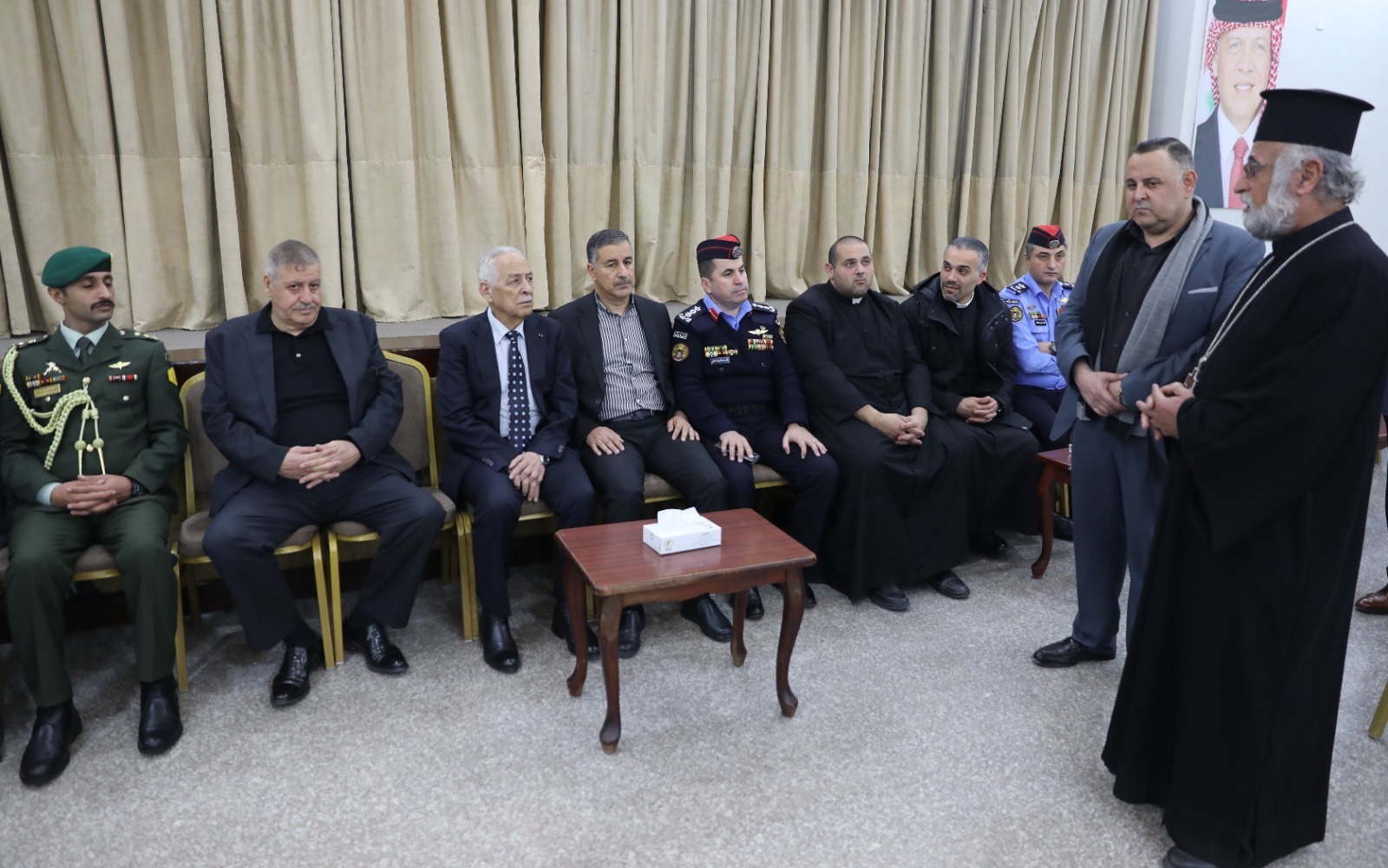 *البلقاء- 10 آذار 2026-* مندوبا عن جلالة الملك عبدالله الثاني وسمو والأمير الحسين بن عبدالله الثاني، ولي العهد، قدم رئيس الديوان الملكي الهاشمي يوسف حسن العيسوي، اليوم الثلاثاء، واجب العزاء إلى عشيرة السميرات بوفاة المرحومة مرسيل طعيمة السميرات أرملة المرحوم جريس سمعان السميرات وشقيقة النائب السابق رائد السميرات.
