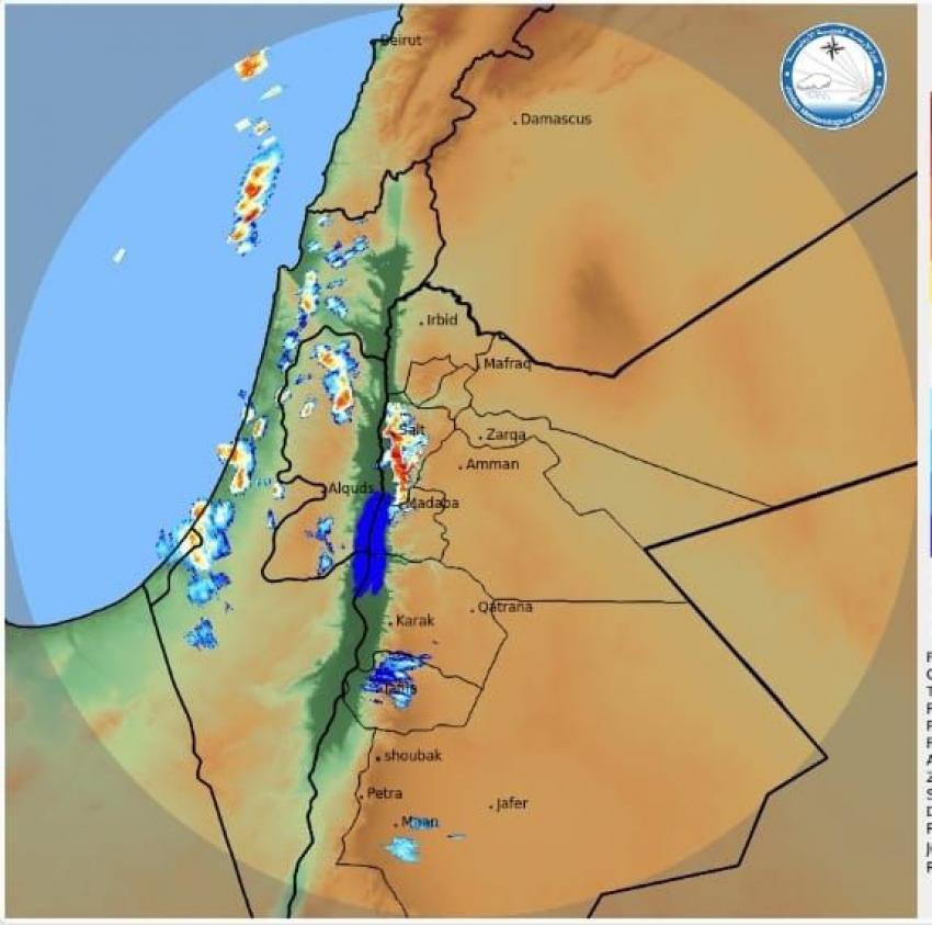 قالت إدارة الأرصاد الجوية الأردنية إن آخر صور الأقمار الاصطناعية تشير إلى تأثر أجزاء من عمّان ومحافظة البلقاء في هذه الأثناء بعواصف رعدية قوية.